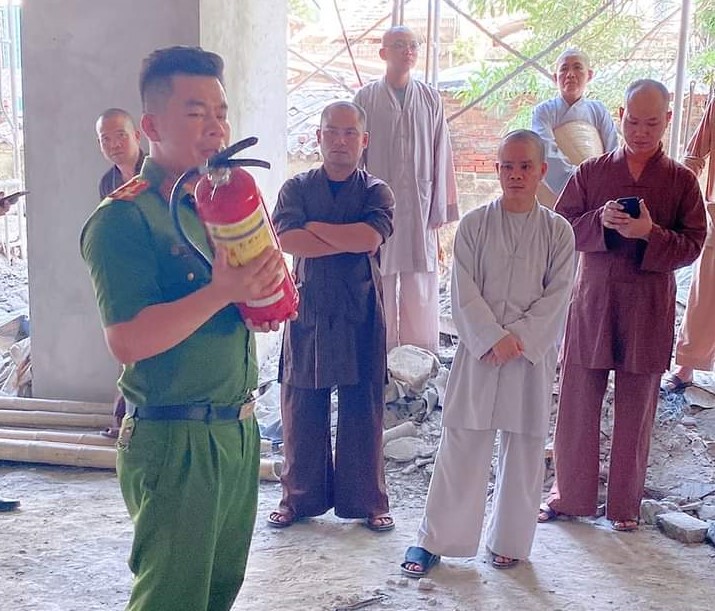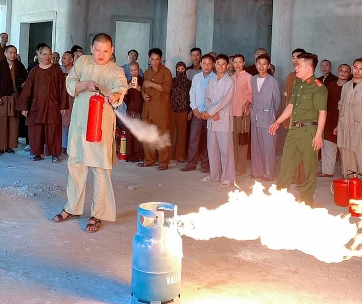 Tại buổi tập huấn, Đại tá Nguyễn Ngọc Thanh, Trưởng Phòng cảnh sát Phòng cháy chữa cháy và cứu nạn cứu hộ - Công an tỉnh Nghệ An đã thông tin một số nguyên nhân gây cháy ở các chùa, các biện pháp phòng và tập huấn cách sử dụng bình chữa cháy khi gặp cháy nổ.