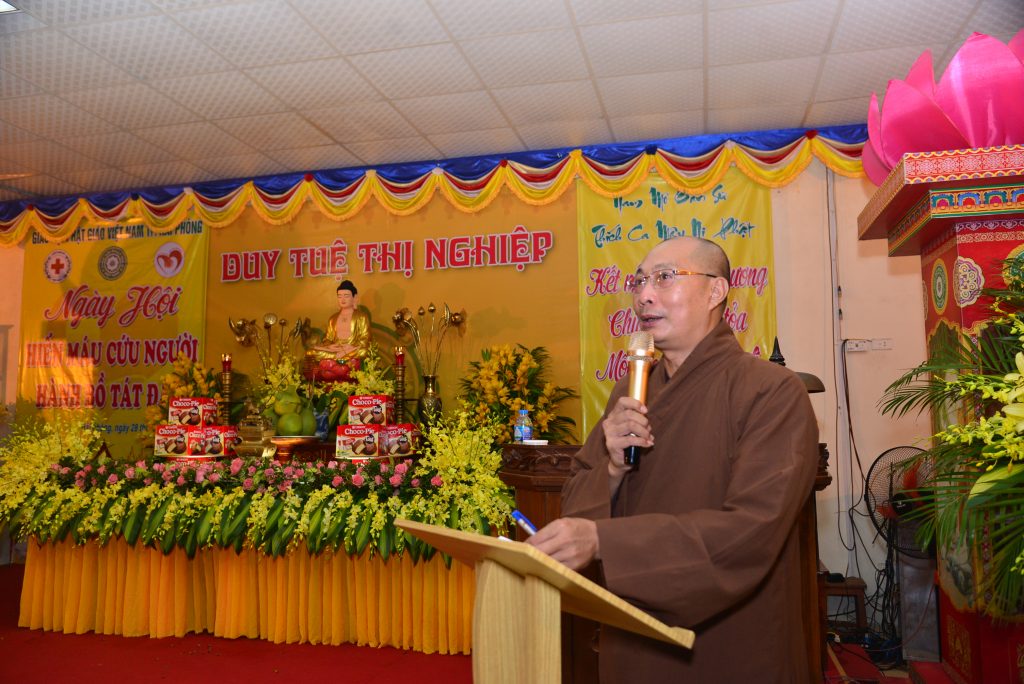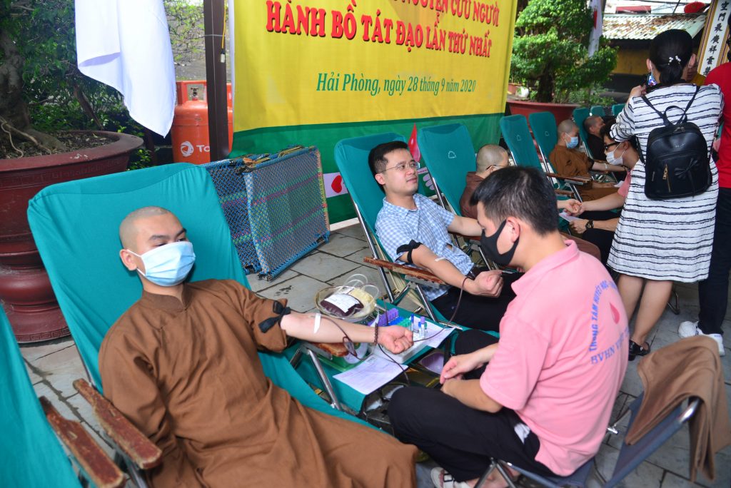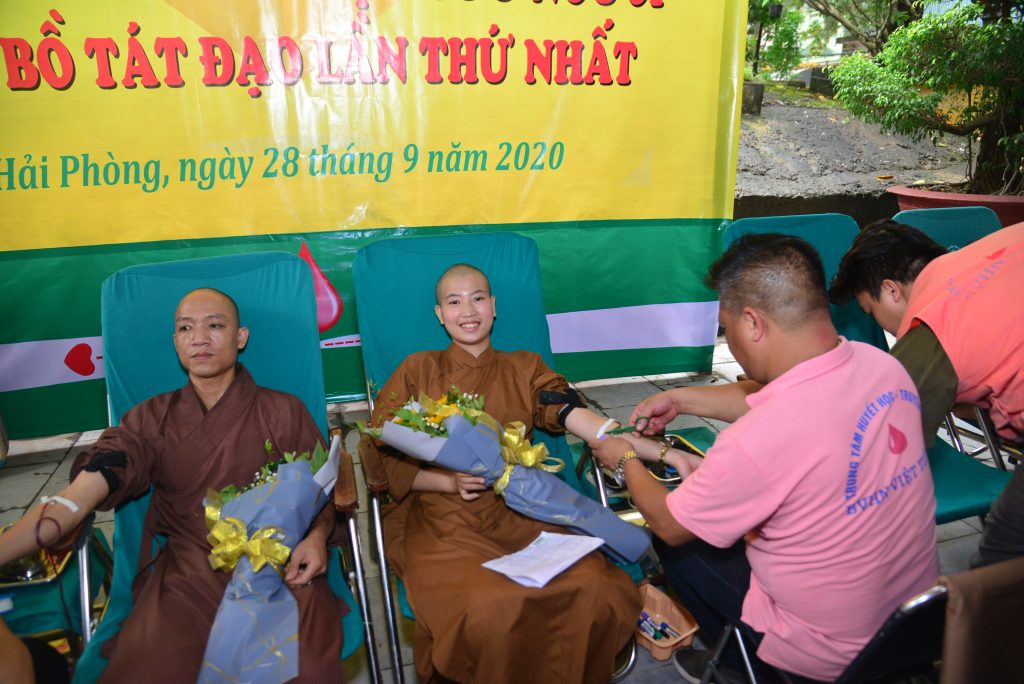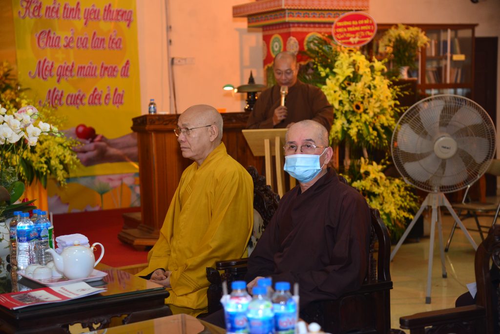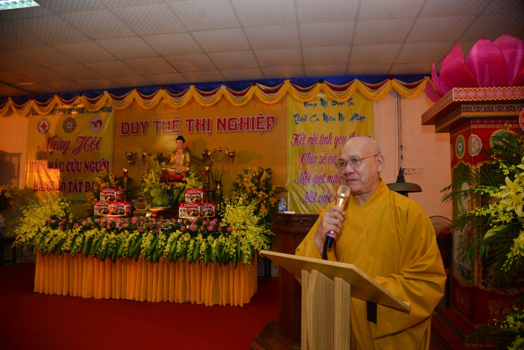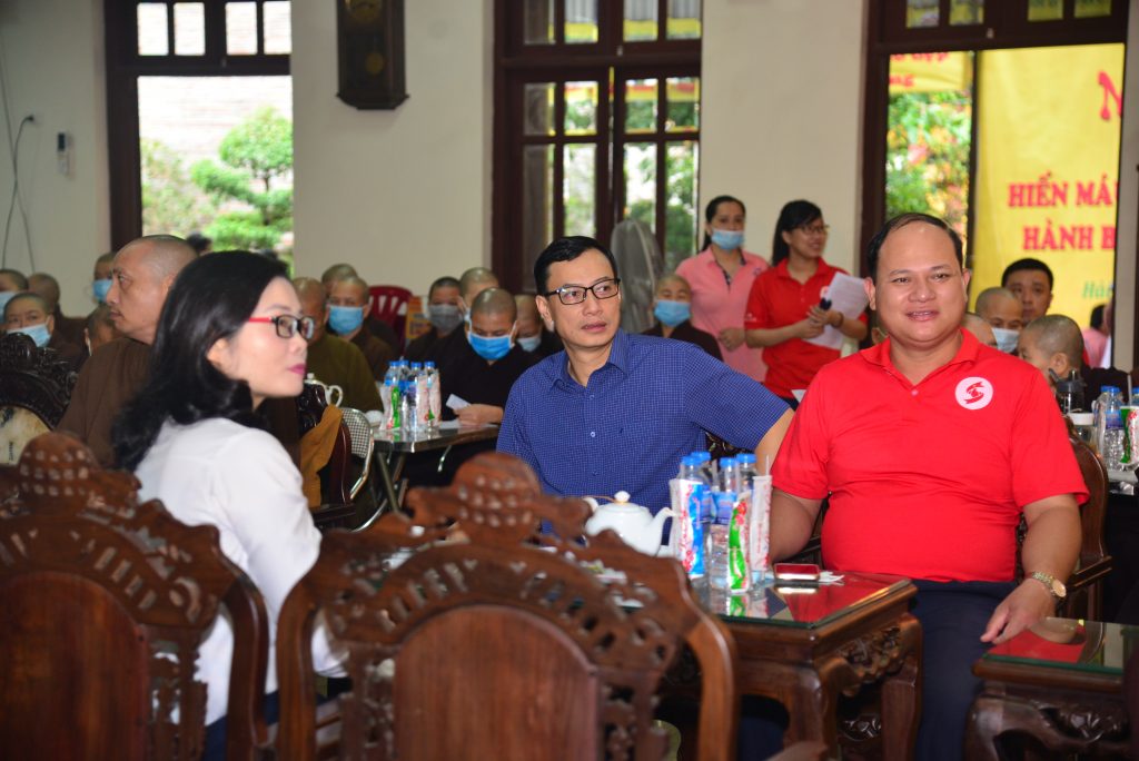 Nhân dịp này, HT. Thích Quảng Tùng - Phó chủ tịch HĐTS TƯ GHPGVN, Trưởng BTS GHPGVN TP. Hải Phòng đã chia sẻ tới chư Tôn đức Tăng Ni, các vị quan khách về “Ý nghĩa Hành Bồ Tát đạo”. Hòa thượng cho biết: Trong Phật giáo có 2 loại bố thí. Đó là bố thí Nội tài và bố thí Ngoại tài. Bố thí nội tài là những đóng góp bằng sức lực hoặc hy sinh thân mạng mình để cứu vớt người khác, hiến tặng các bộ phận khác trên cơ thể, những gì mình sẵn có; Bố thí ngoại tài là những đóp góp bằng tiền, của cải, vật chất bên ngoài và hiến máu chính là hành động bố thí nội tài tốt nhất với thông điệp “Một giọt máu cho đi, một cuộc đời ở lại”.