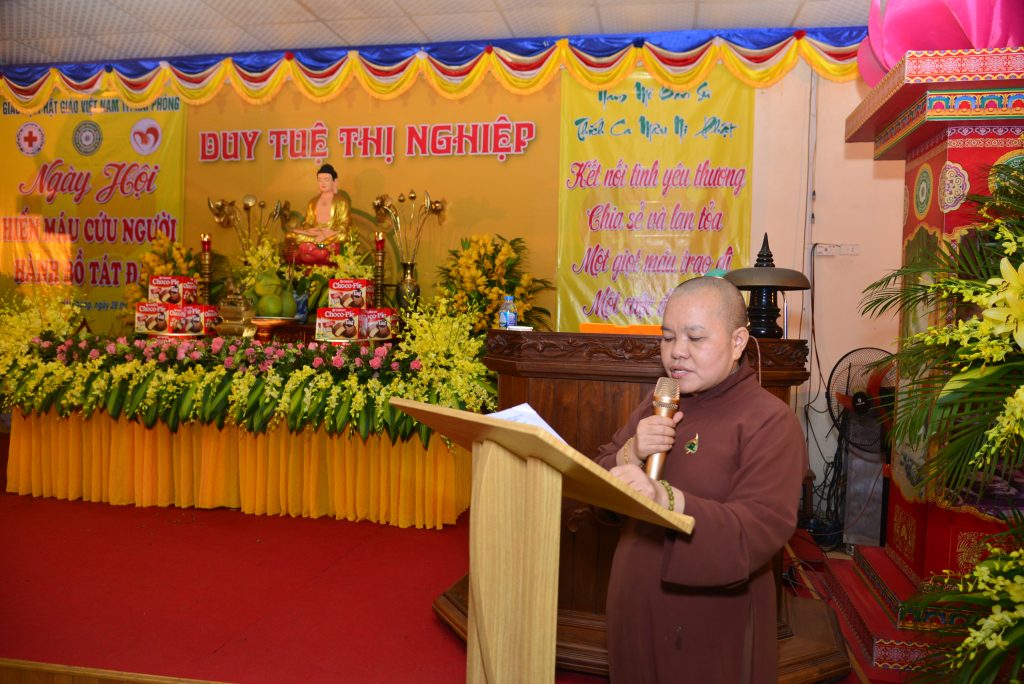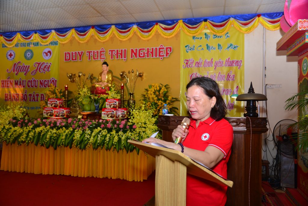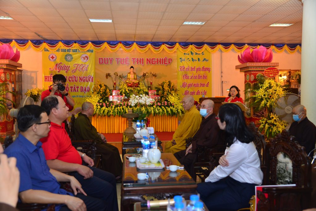Phát biểu khai mạc ngày hội hiến máu, bà Cao Thị Phượng - Phó trưởng Ban thường trực Ban chỉ đạo vận động hiến máu tình nguyện thành phố cho biết: Đây là một chương trình mang ý nghĩa nhân văn trên tinh thần hưởng ứng thư kêu gọi toàn dân hiến máu tình nguyện của Tổng Bí Thư, Chủ tịch nước, Chủ tịch danh dự Hội CTĐ Việt Nam Nguyễn Phú Trọng và chương trình phối hợp giữa TƯ GHPGVN và Hội CTĐ Việt Nam tổ chức Ngày hội “Hiến máu cứu người - Hành Bồ Tát đạo”.