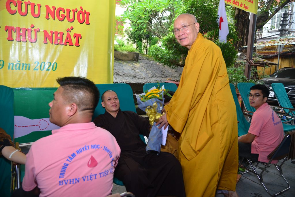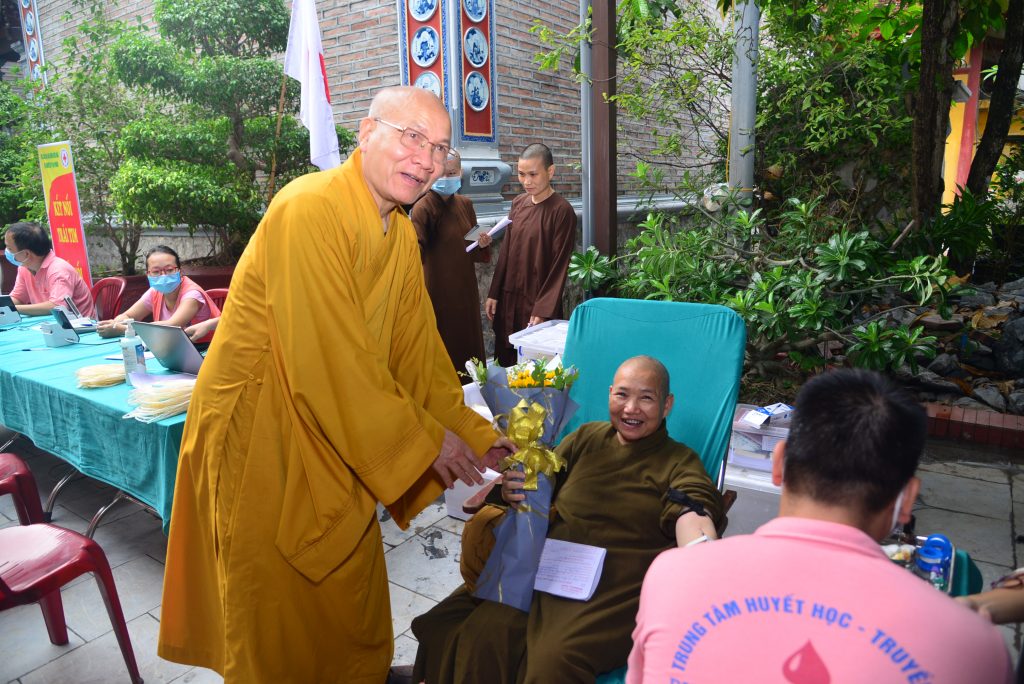 HT. Thích Quảng Tùng tặng hoa động viên chư Tôn đức tham gia hiến máu