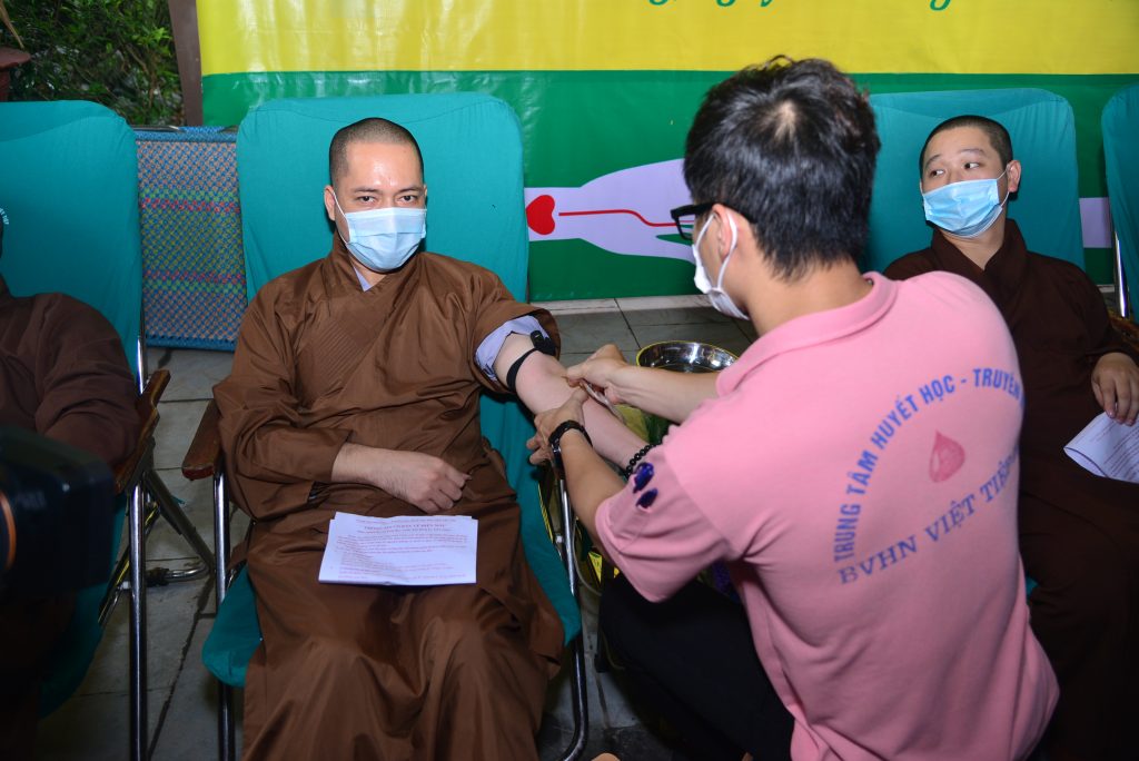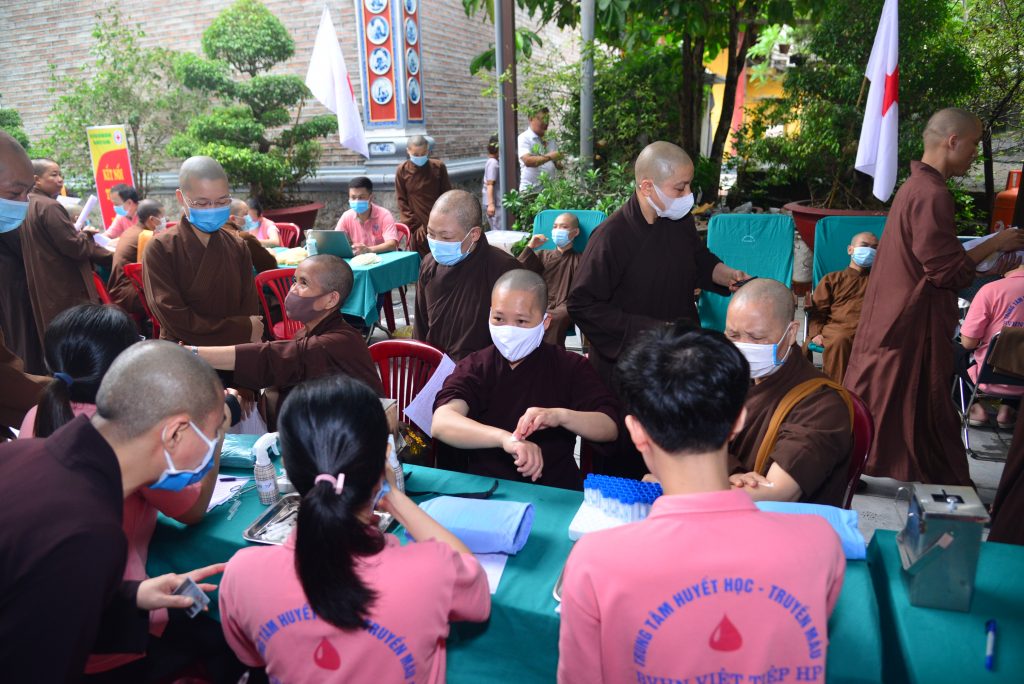 Đông đảo chư Tôn đức tham gia phong trào hiến máu