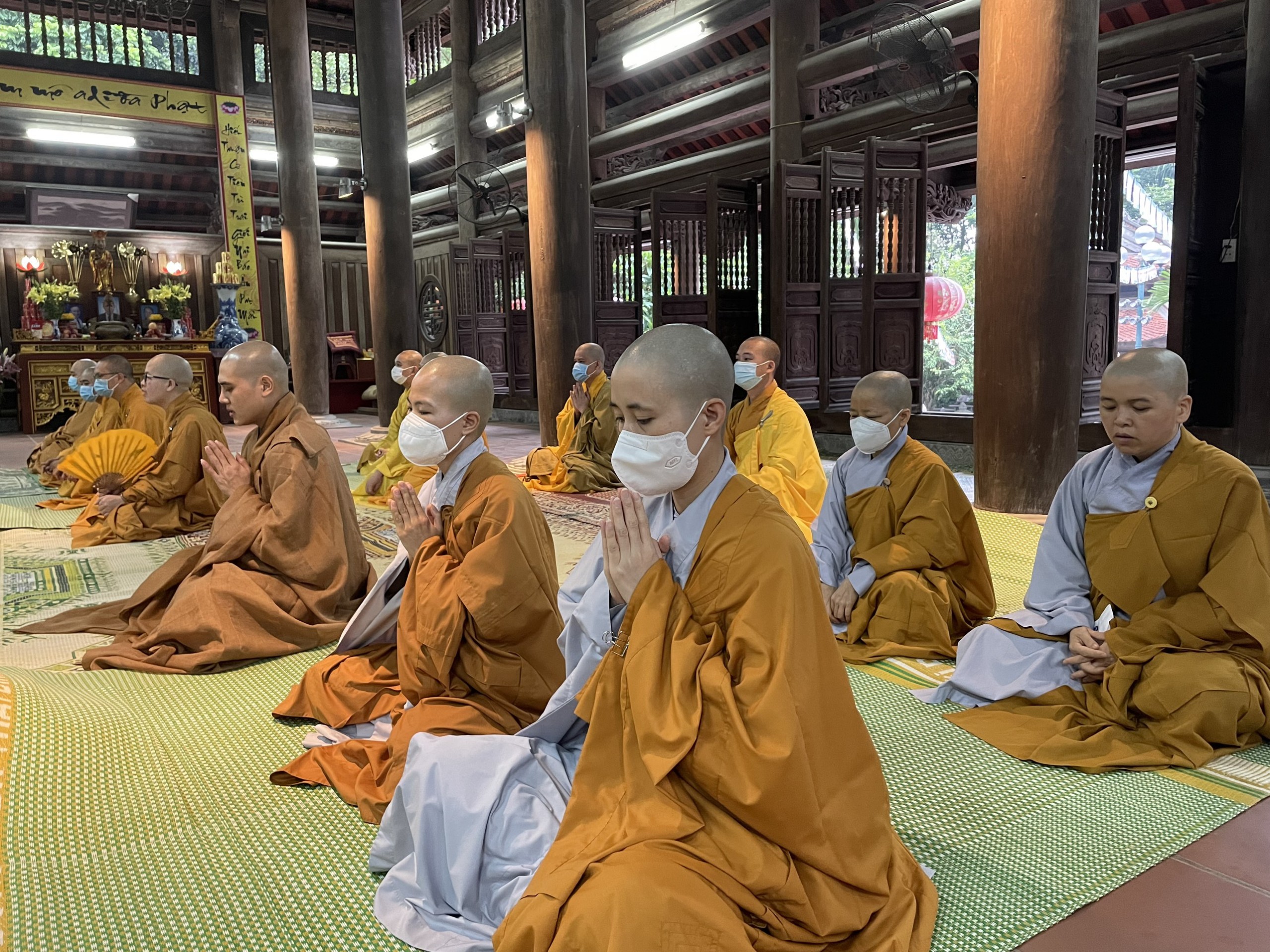 PSO - Ngày 21/8/2021 (nhằm ngày 14/7 năm Tân Sửu), HVPGVN tại TP. Hà Nội đã tổ chức lễ “Giải hạ” và “ Yết ma tác pháp Tự tứ” trong không khí trang nghiêm, thanh tịnh và thắm tình đạo vị. Chứng minh và tham dự buổi lễ có: HT.TS Thích Thanh Đạt – UV Thư kí HĐTS, Đường chủ hạ trường Sóc Thiên Vương; TT. Thích Thanh Ân – Nguyên Phó viện trưởng, chánh Duy Na hạ trường, Giáo thụ sư tại Học viện; HT.TS Thích Thanh Quyết – Phó Chủ tịch HĐTS, Trưởng ban giáo dục Tăng Ni TƯ, Viện trưởng HVPGVN tại Hà Nội, Trưởng ban thuyết giảng tại hạ trường Sóc Thiên Vương; ĐĐ. Thích Đạo Mẫn - Chánh VP, phó Duy Na hạ trường Học viện cùng chư vị quản viện và Tăng Ni sinh tại HVPGVN, TP. Hà Nội. Mở đầu buổi lễ, đại diện Tăng Ni sinh đã thỉnh cầu và đỉnh lễ khánh tuế chư Tôn đức nhân dịp kết thúc khóa an cư kiết hạ PL. 2565; đồng thời dâng lời tác bạch, kính chúc chư Tôn đức được pháp thể khinh an, phúc trí nhị nghiêm, mãi mãi là hàng thạch trụ, bóng cây Bồ Đề che trở, dìu dắt cho thế hệ Tăng Ni sinh trẻ trên con đường tiến tu học Phật. Tiếp theo đó, chư Tôn đức đã có đôi lời sách tấn đến Tăng Ni sinh: Sau 3 tháng an cư kết hạ, trong lúc dịch bệnh COVID-19 vẫn đang diễn biến phức tạp, Tăng Ni sinh đã thực hiện việc cấm túc an cư “nội bất xuất, ngoại bất nhập” nhằm nghiêm trì giới luật, thúc liễm thân tâm và chấp hành tốt nội quy của hạ trường cũng như nội quy của Học viện để từ đó tạo nên đạo tràng trang nghiêm thanh tịnh, tinh thần lục hòa đúng như luật Phật chế. Đây cũng là ngày trưởng tịnh, chư Phật hoan hỉ; chư Tăng được tăng thêm một tuổi đạo; ngày đánh dấu sự thành tựu sau 3 tháng chuyên tâm tu tập, hạ thủ công phu, trưởng dưỡng tự thân, tăng thêm đạo lực”. Sau các nghi thức quan trọng: bạch Phật, Yết Tổ, chúc Hộ Pháp, chúc Thánh,… khai kinh, chư Tôn đức đã Yết ma tác pháp tự tứ, đối thú tự tứ với nội dung sau: “Đại Đức chúng Tăng, kim nhật tự tứ, ngã tỷ khiêu………… diệc tự tứ, nhược hữu kiến, văn, nghi tội. Nguyện Đại Đức ai mẫn cố, ngữ ngã, ngã nhược kiến tội, đương như pháp sám hối. Thiện-đáp-Nhĩ .” Buổi lễ khép lại sau nghi thức hồi hướng để cầu nguyện cho đất nước thái bình, phồn thịnh, dịch bệnh băng tiêu, nhân dân an lạc, phong điều vũ thuận; nguyện cầu Phật pháp xương long, Tăng già hòa hợp, tứ chúng đồng tu. Nhân dân được mạnh khỏe đặng hai chữ cát bảo, bình an công việc hanh thông thuận lợi. Nguyện người người an vui, nhà nhà ấm no hạnh phúc; hồi hướng cầu siêu cho anh linh các anh hùng Liệt sĩ, đồng bào tử nạn trong các cuộc chiến tranh và tử nạn do COVID-19; Cửu huyền Thất tổ các tộc các phái, thập nhị loại chúng sinh siêu sinh tịnh độ.