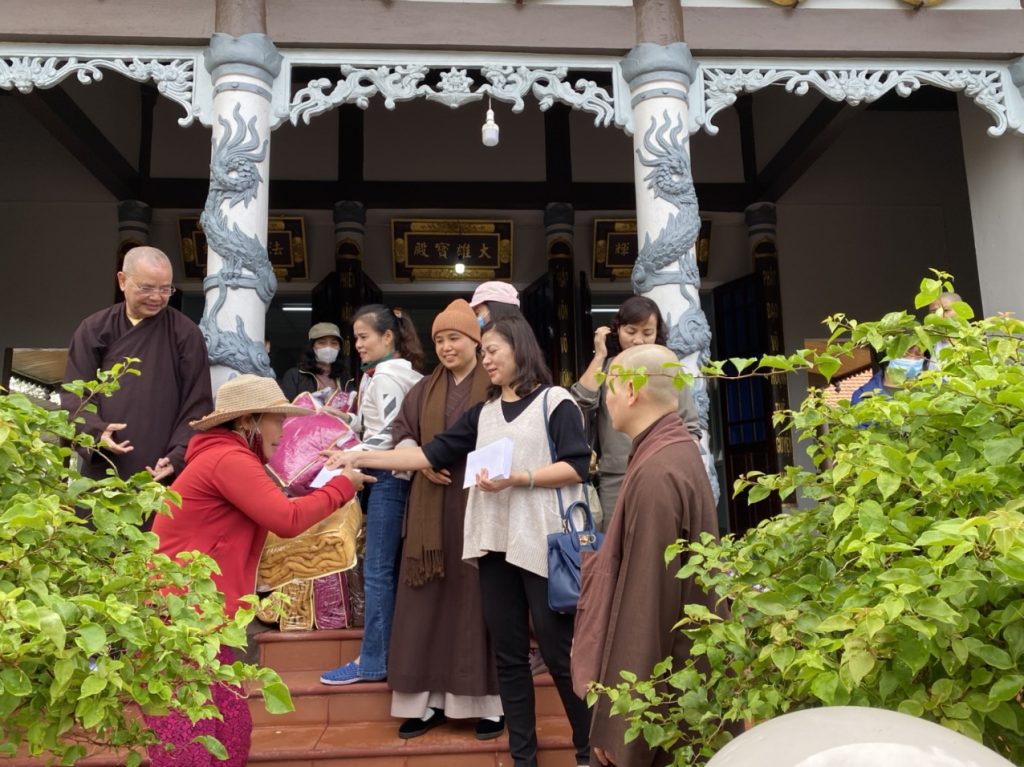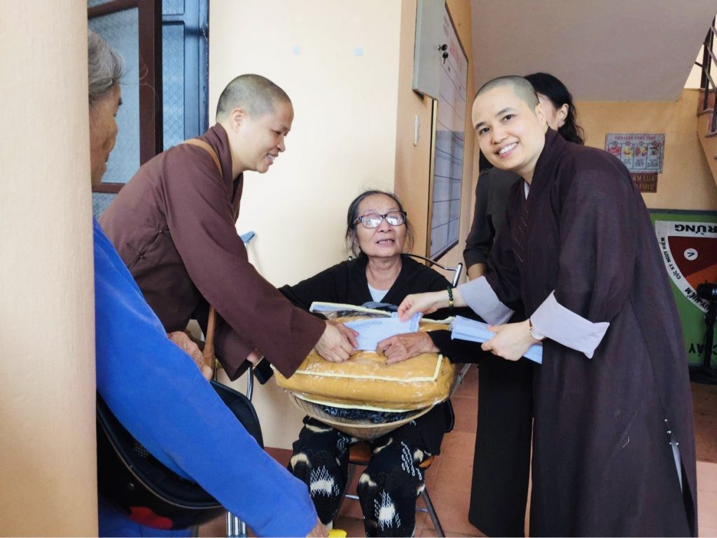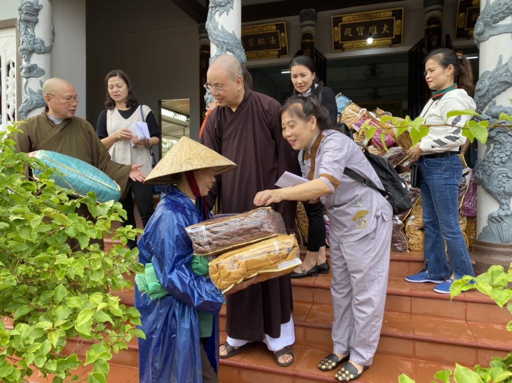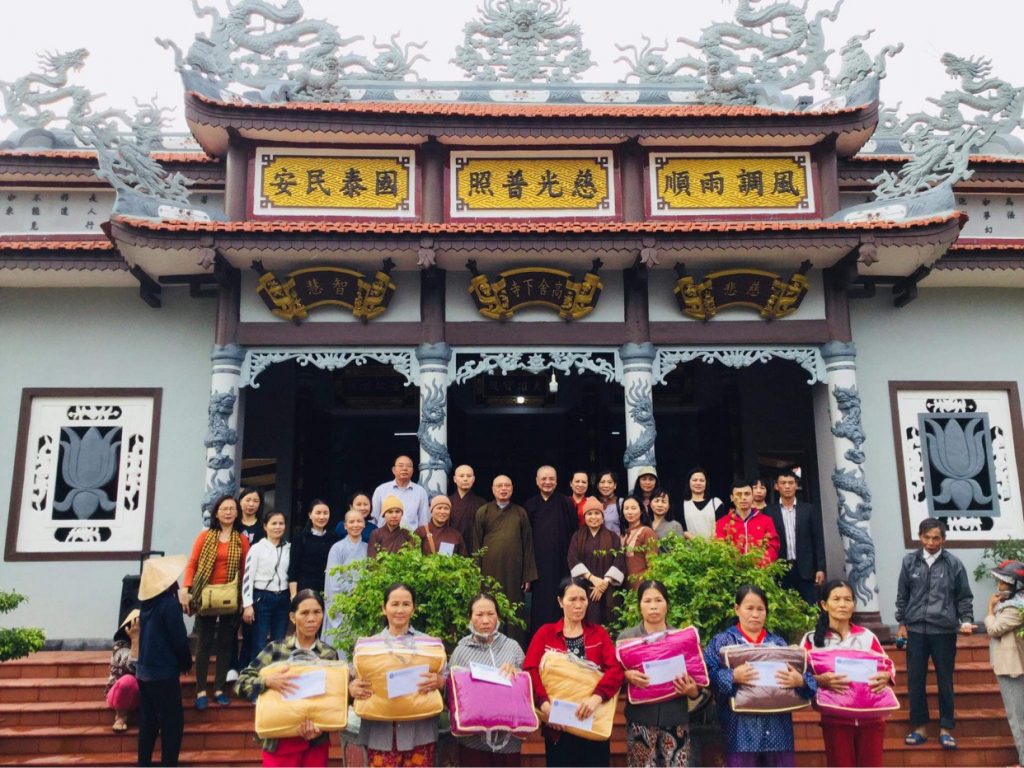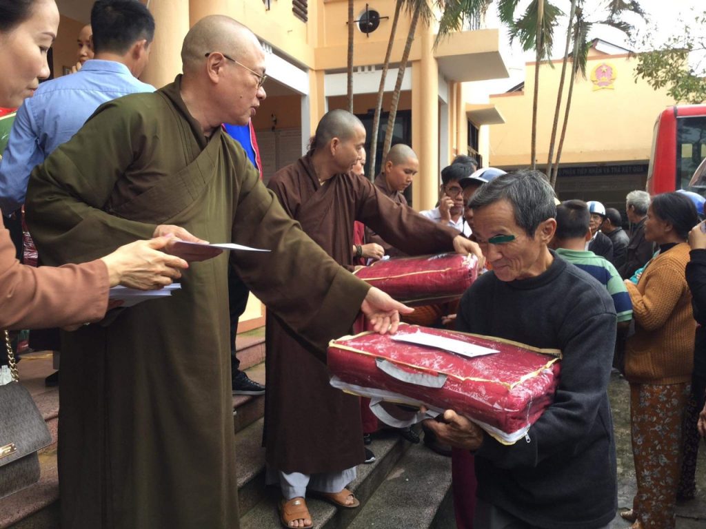 Ngày 16/11/2020 đoàn đã tới động viên, thăm hỏi và trao 250 phần quà cho 250 hộ gia đình có hoàn cảnh khó khăn bị thiệt hại do lũ lụt, sạt lở đất thuộc xã Quảng Vinh, huyện Quảng Điền, tỉnh TT-Huế. Mỗi phần quà bao gồm 1 phong bì tiền mặt 1 triệu đồng và 1 chiếc chăn ấm. Chiều cùng ngày, đoàn tới động viên, thăm hỏi, chia sẻ khó khăn, mất mát với thân nhân của một số gia đình chiến sỹ đã anh dũng hy sinh trong đợt cứu hộ, cứu nạn do sạt lở núi tại tiểu khu 67 và thuỷ điện Rào Trăng 3. Đồng thời, chư tôn đức đã làm lễ dâng hương, tưởng niệm và tụng kinh cầu nguyện hương linh các anh hùng, liệt sỹ sớm được siêu thoát.