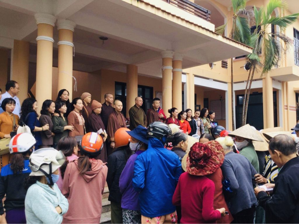 PSO - Trong 2 ngày 16 và 17/11/2020 ( nhằm ngày 2 và 3/10 Canh Tý), HT. Thích Thanh Giác - Phó trưởng Ban Thường trực Ban Hoằng pháp TƯ GHPGVN, Phó trưởng Ban Thường trực BTS GHPGVN TP.Hải Phòng, Trưởng đoàn từ thiện; SC. Thích Hạnh Như - Trụ trì chùa Linh Ứng, H. Kiến Thuỵ, TP.Hải Phòng; SC. Thích Diệu Phụng, chư Tôn đức Tăng Ni trụ trì một số chùa trên địa bàn thành phố cùng đại diện thành viên CLB Hoa Sen (chùa Linh Ứng), Phật tử chùa Long Hoa, chùa Phổ Chiếu, CLB Hải Phòng Học và các nhà hảo tâm, các Mạnh thường quân đã trao 500 phần quà cho bà con bị thiệt hại do bão lũ tại tỉnh TT-Huế.