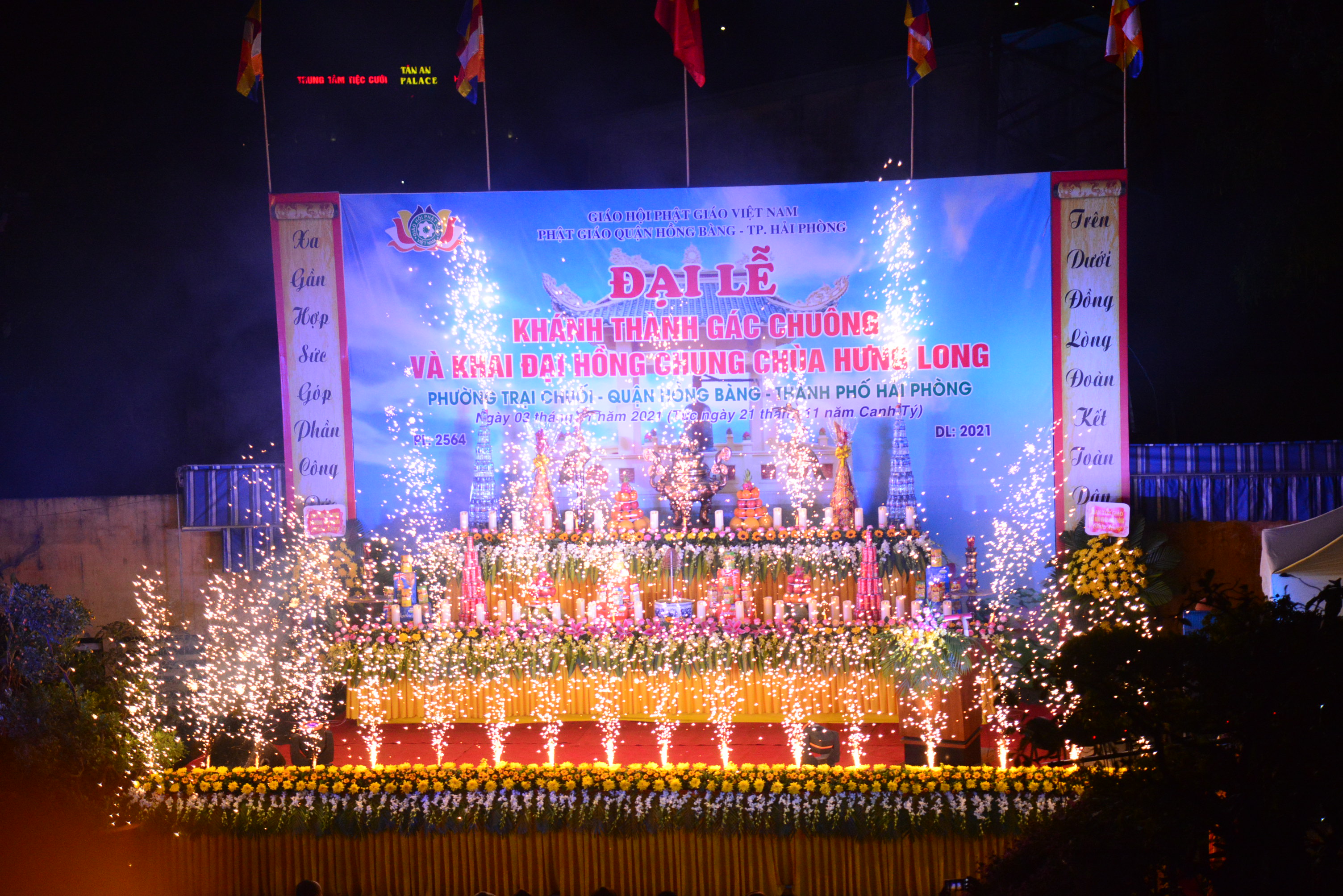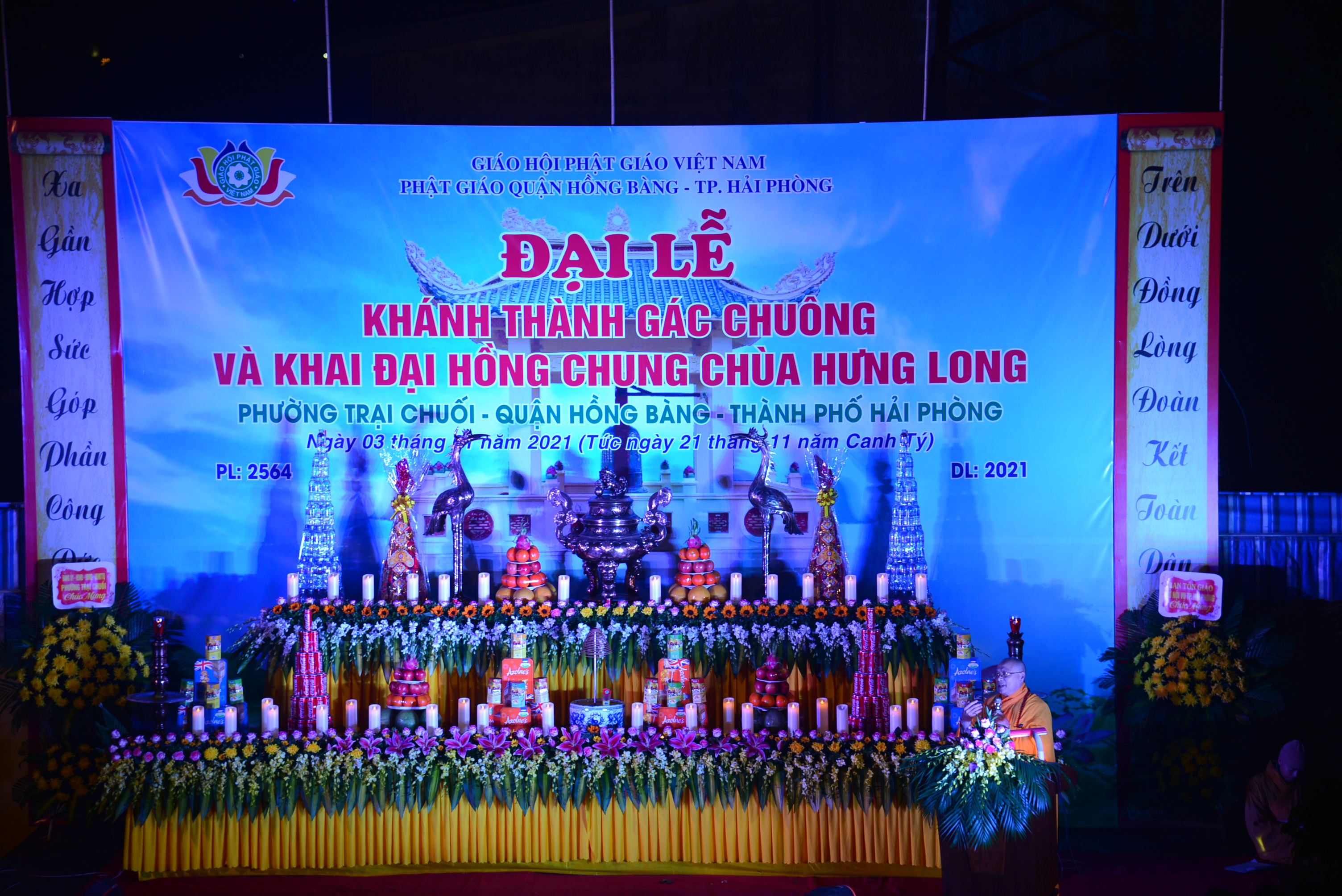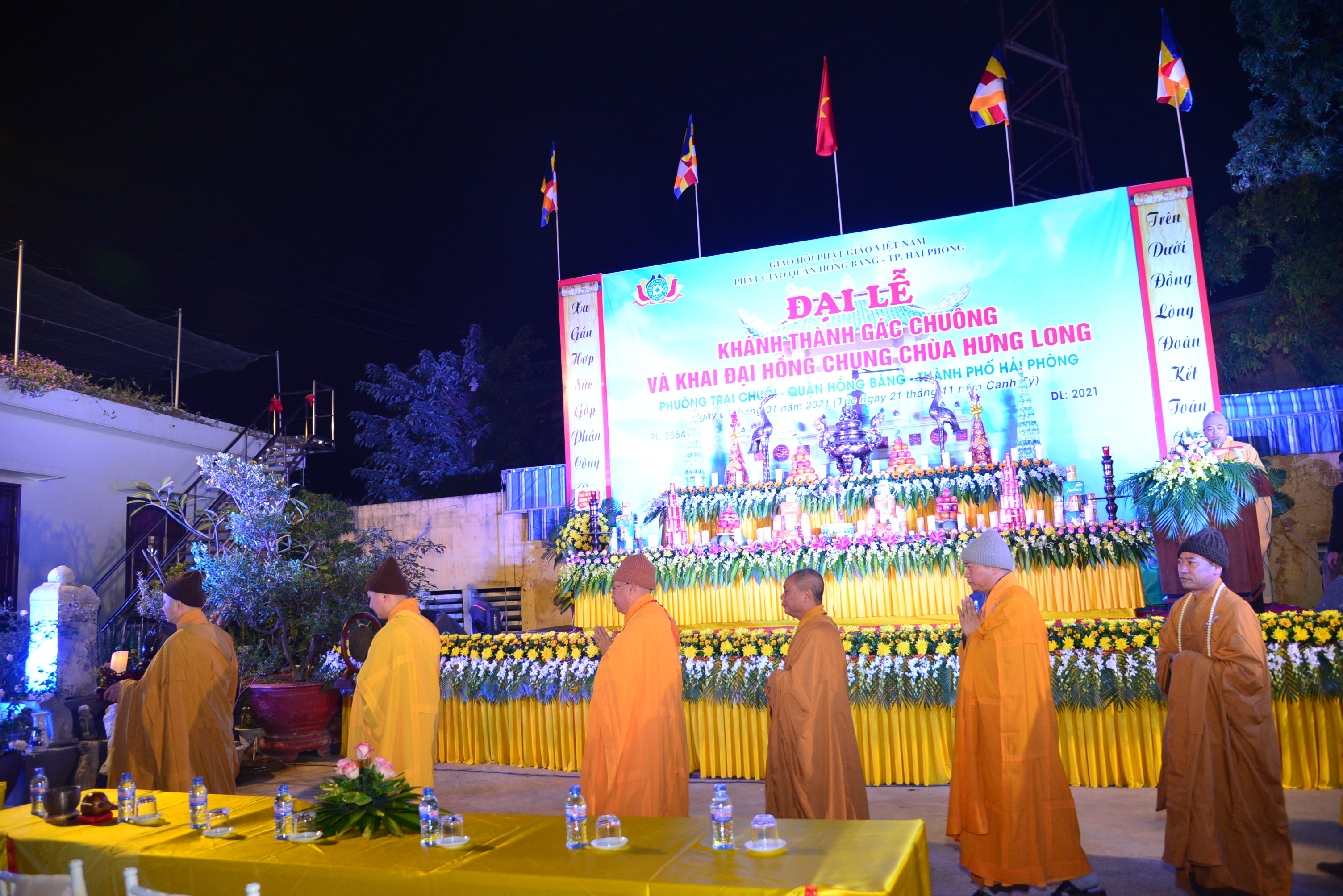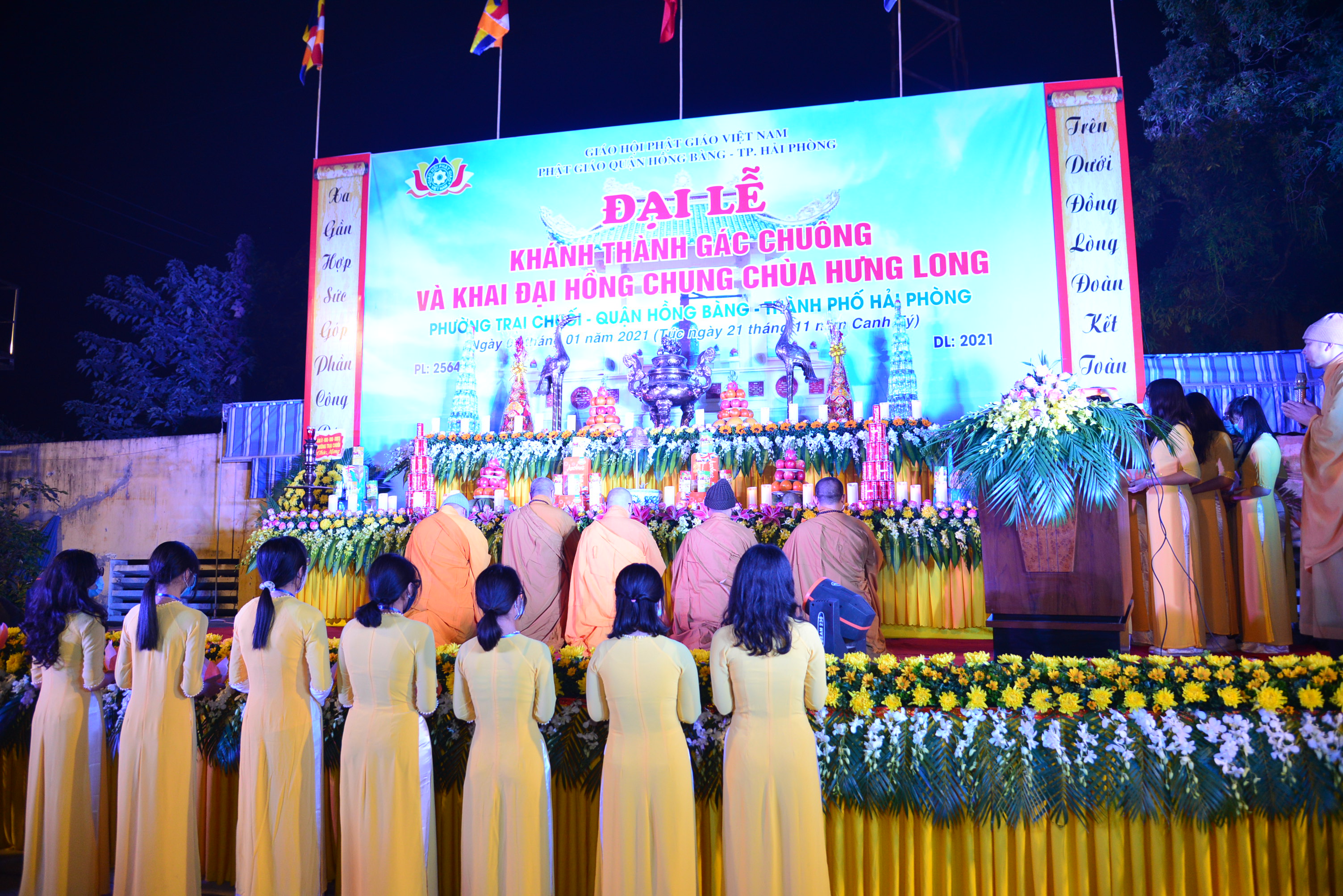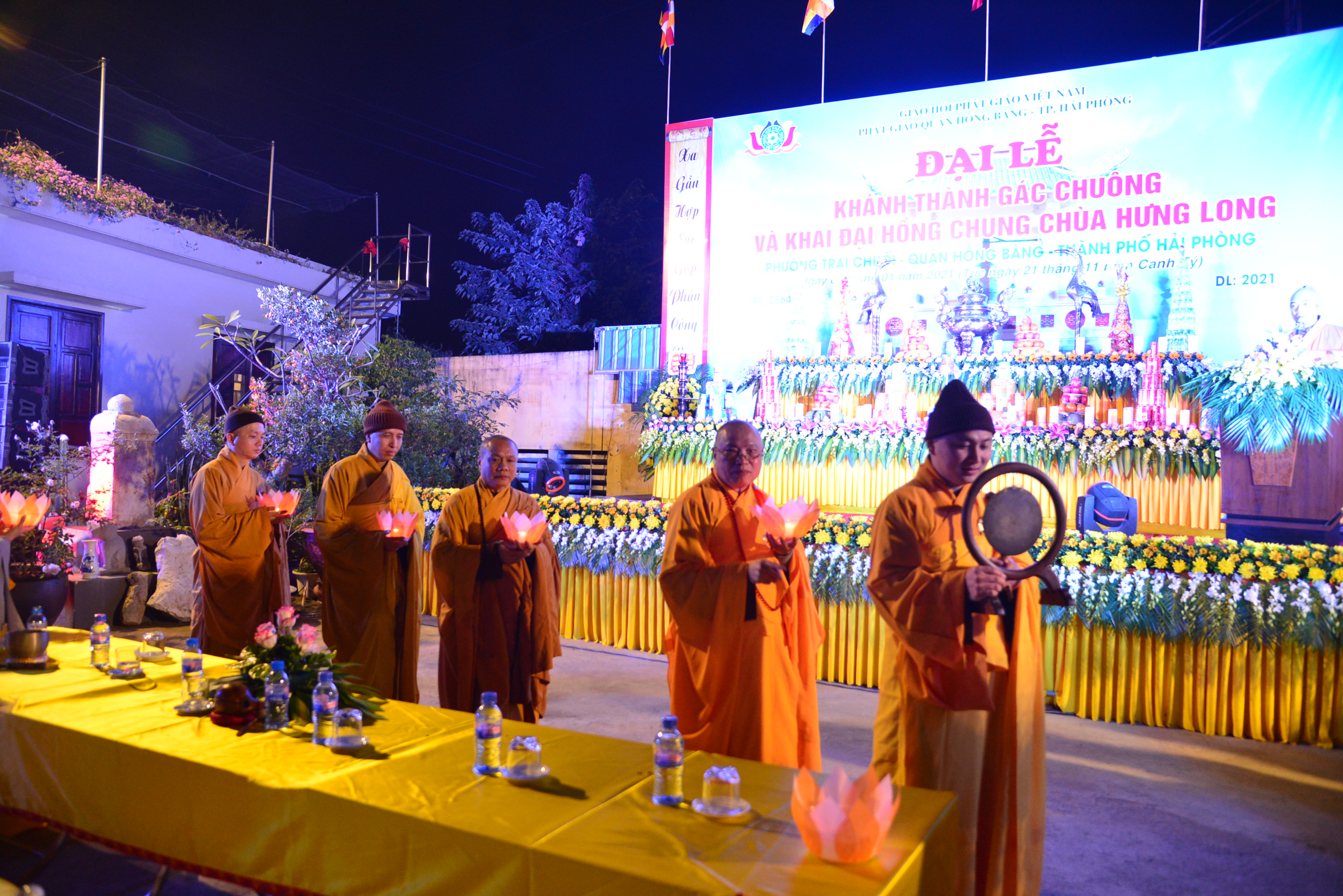 PSO - Tối ngày 3/1/2021 (nhằm ngày 21/11 năm Canh Tý), tại chùa Hưng Long (phường Trại Chuối, quận Hồng Bàng, TP. Hải Phòng) đã long trọng diễn ra Đại lễ khánh thành gác chuông, khai đại hồng chung và Đêm hoa đăng kính mừng khánh đản Đức Phật A Di Đà, cầu nguyện thế giới hoà bình, chúng sinh an lạc.