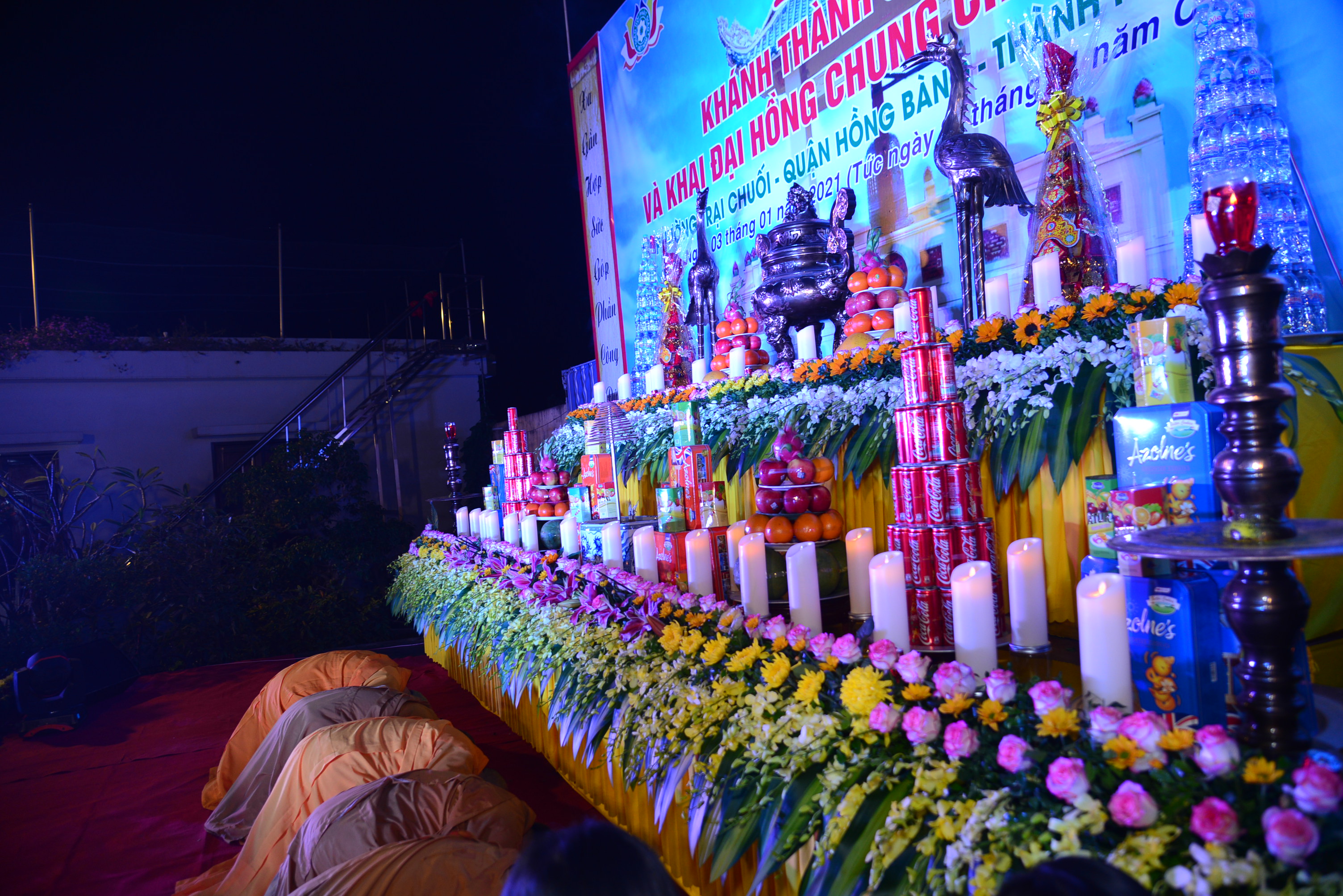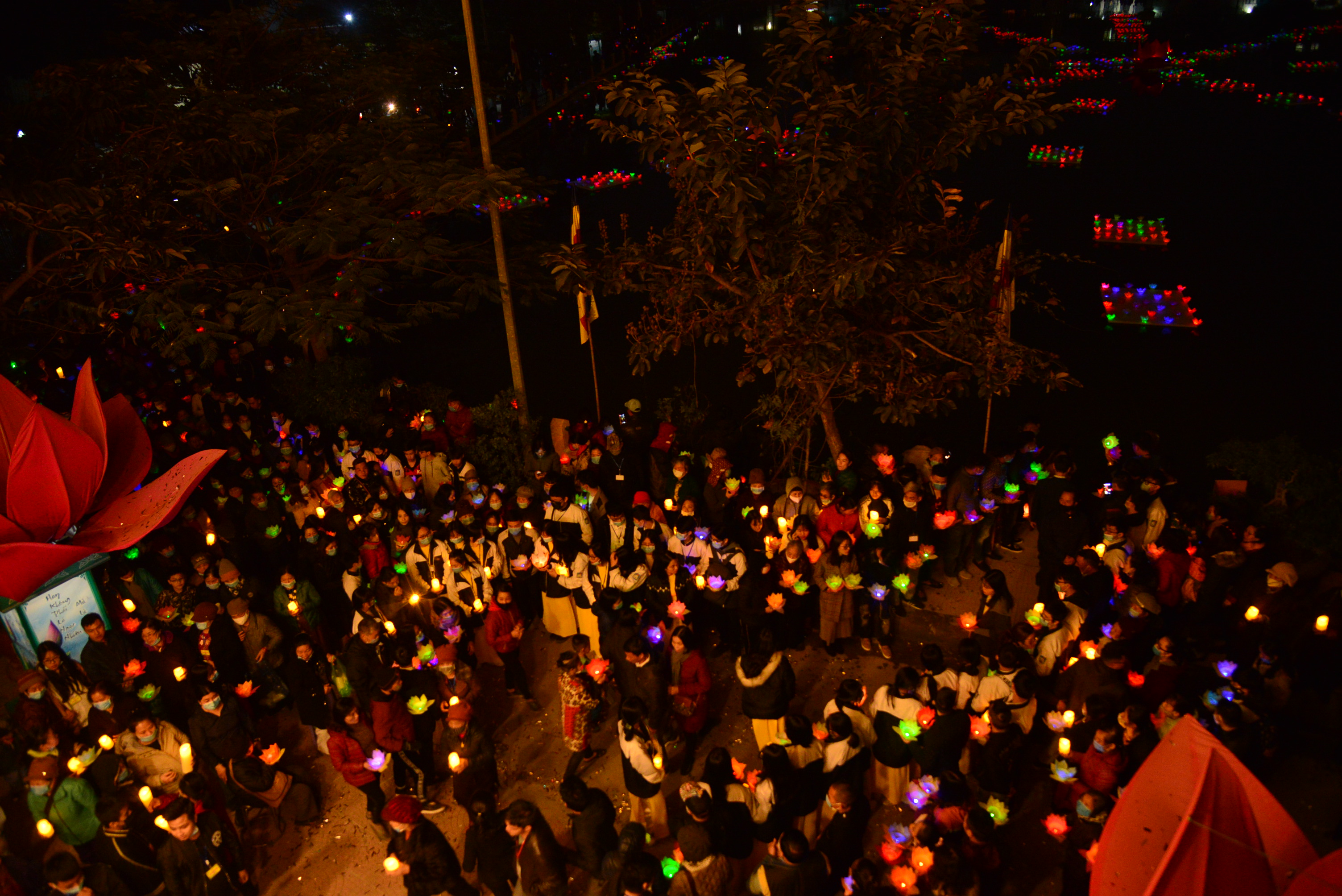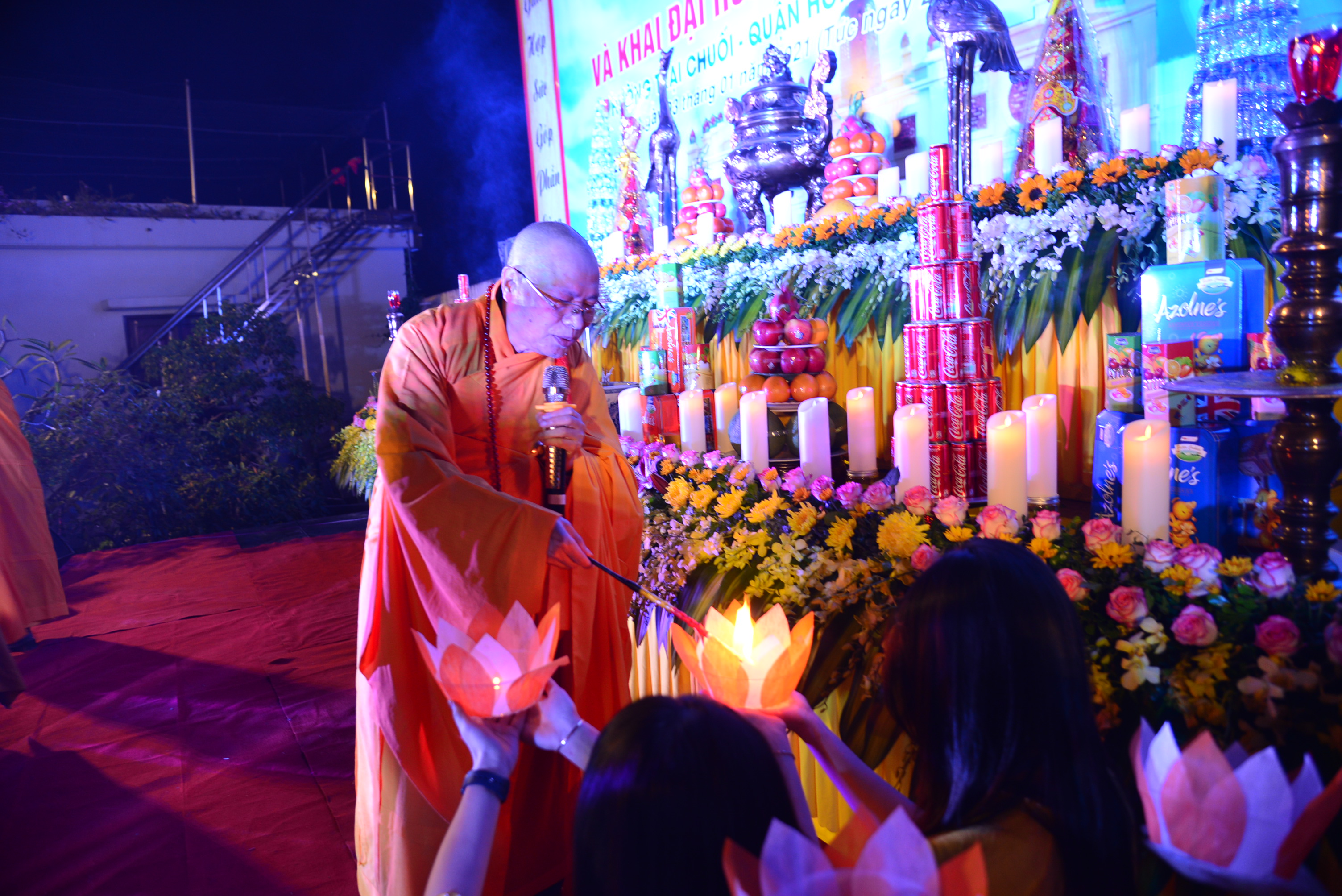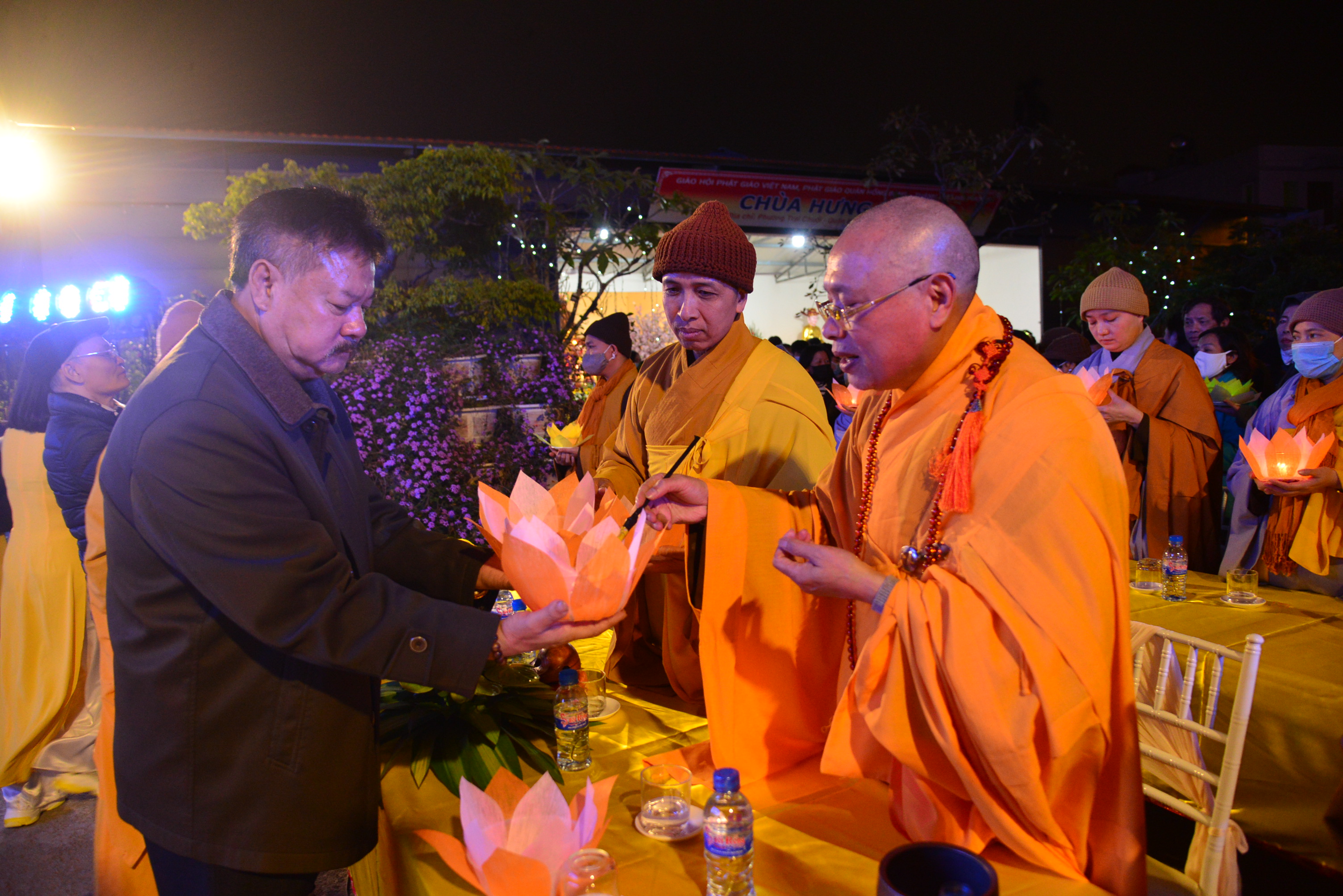 Nhân dịp này, chư Tôn đức Tăng Ni, quý Phật tử và nhân dân địa phương đã tổ chức nghi lễ niêm hương, bạch Phật và tổ chức đêm hoa đăng kính mừng khánh đản Đức Phật A Di Đà, cầu nguyện thế giới hoà bình, chúng sinh an lạc, Phật pháp trường tồn.