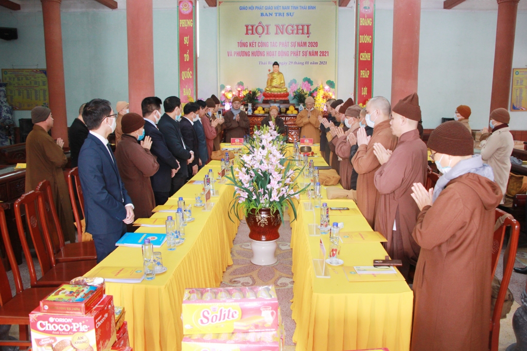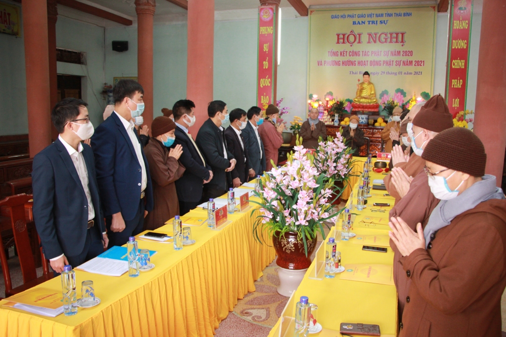 Đại biểu chính quyền tỉnhHoạt động từ thiện được phát huy rộng rãi tại các chùa với nhiều hình thức như: tặng quà Tết, ủng hộ người nghèo, từ thiện tại các bệnh viện, bảo trợ học sinh vượt khó, tặng quỹ khuyến học, xây dựng nhà tình nghĩa, đường nông thôn với tổng số tiền đạt được gần 10 tỷ đồng... Đặc biệt trong việc phòng chống đại dịch Covid-19, BTS Phật giáo tỉnh, Ban Thông tin Truyền thông tỉnh kết hợp với Đài Truyền hình, Báo Thái Bình phổ biến tuyên truyền cho Tăng Ni và Phật tử trong tỉnh đã ủng hộ tích cực trong thời gian diễn ra Đại dịch Covid-19. Các BTS, Tăng Ni trụ trì các tự viện, Phật tử đã có nhiều hoạt động như: ủng hộ tịnh tài, tịnh vật khác được các cấp chính quyền và nhân dân đánh giá cao.