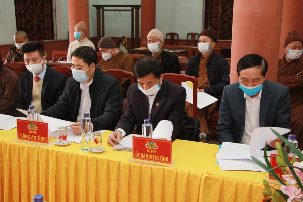 Chư Tôn đức Tăng NiĐại diện cho các cấp chính quyền về tham dự, ông Trần Quang Minh, Phó ban Dân vận Tỉnh uỷ và ông Đỗ Đắc Tuyn, Trưởng phòng PA02 – Công an tỉnh ghi nhận và đánh giá cao các thành tựu Phật sự của GHPGVN tỉnh nhà trong thời gian qua, đã khẳng định vai trò của Phật giáo nói riêng và các tôn giáo nói chung trong việc đảm bảo an ninh, trật tự, an sinh xã hội, nhất là dịp Tết Nguyên đán Tân Sửu đang gần kề. Đồng thời ông cũng mong muốn các cấp Giáo hội của tỉnh tập trung giải quyết một số tồn tại, duy trì sự thống nhất, đảm bảo an ninh, đoàn kết tại địa phương.