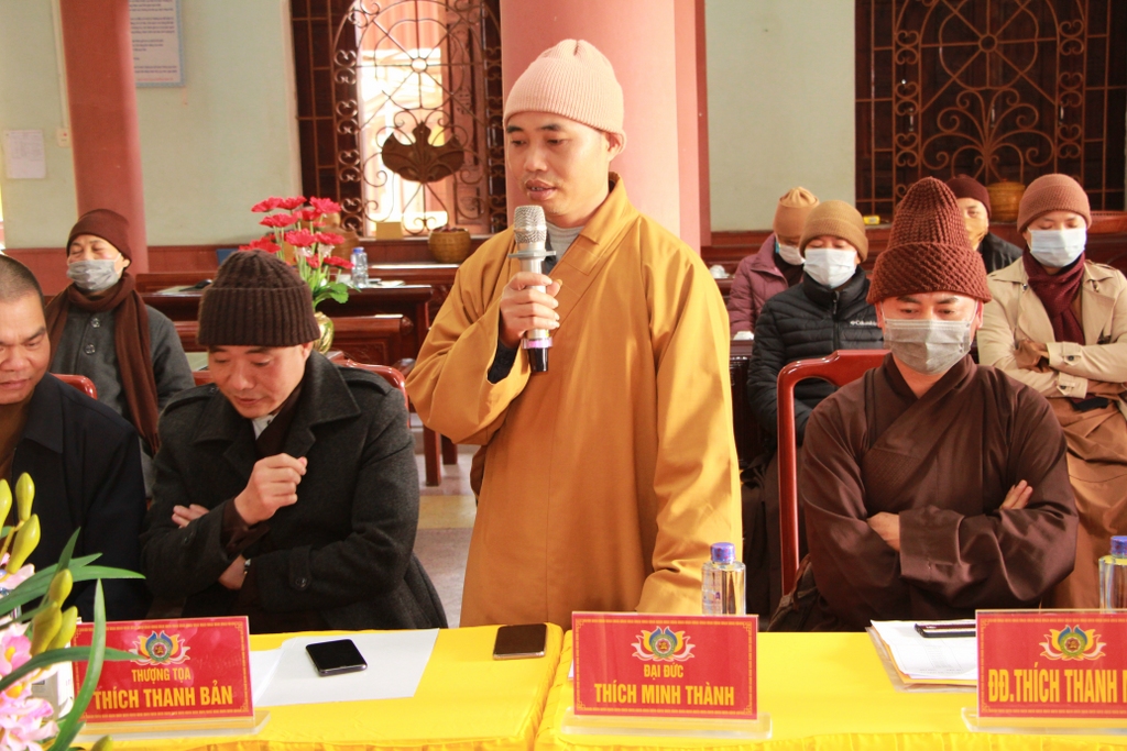 Ông Trần Quang Minh phát biểu ý kiếnPhát biểu đúc kết hội nghị, TT.Thích Thanh Hòa tán dương những thành tựu vượt bậc của Phật giáo tỉnh nhà trong năm qua, nhấn mạnh một số tồn tại, hạn chế cần khắc phục, nêu một số Phật sự quan trọng trong thời gian tới: Tổ chức các hoạt động tín ngưỡng tâm linh Tết Nguyên đán Tân sửu, Đại lễ Phật đản PL.2565, khóa an cư kiết hạ, Đại giới đàn Thánh Long năm 2021, các hoạt động kỷ niệm 40 năm ngày thành lập Giáo hội và Đại hội Phật giáo cấp huyện (dự kiến quý III – 2021) ... Đồng thời, Thượng tọa mong muốn các cấp chính quyền tỉnh sẽ hết sức tạo điều kiện để Phật sự năm 2020 của PG Thái Bình thêm khởi sắc về mọi mặt, đồng đều giữa các ban chuyên môn, giữa các ban Trị sự huyện, thành phố.
