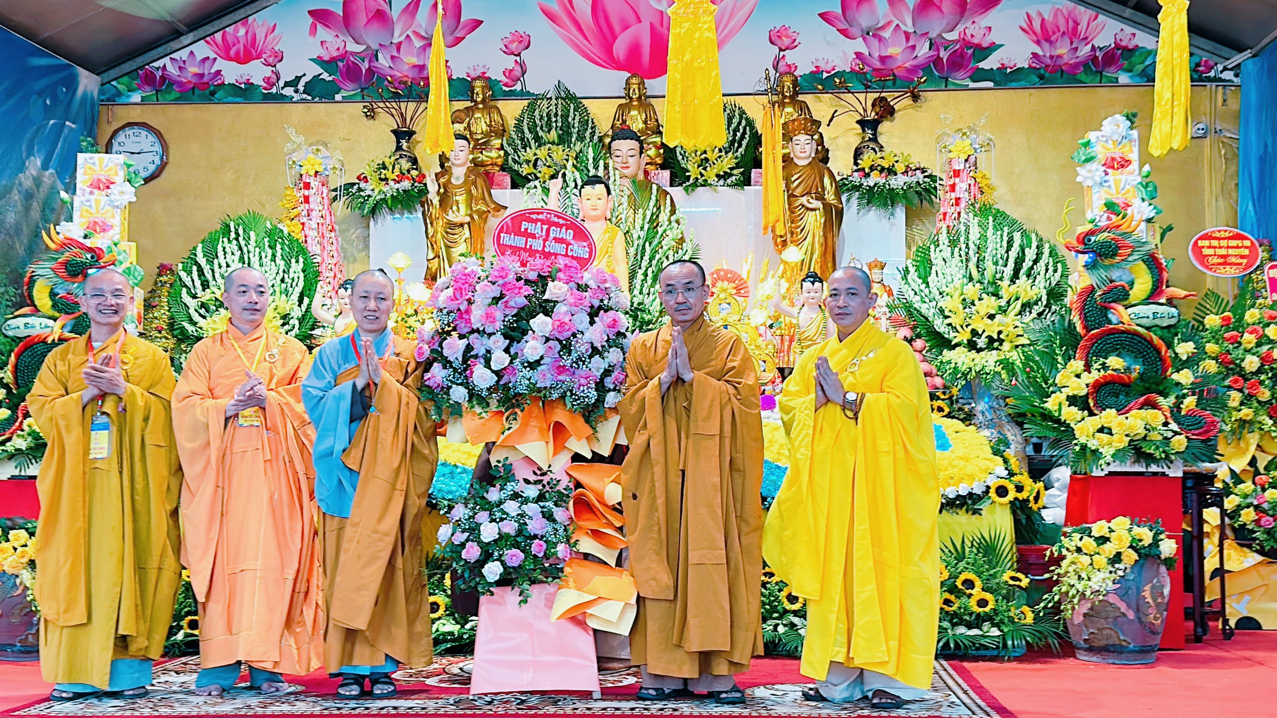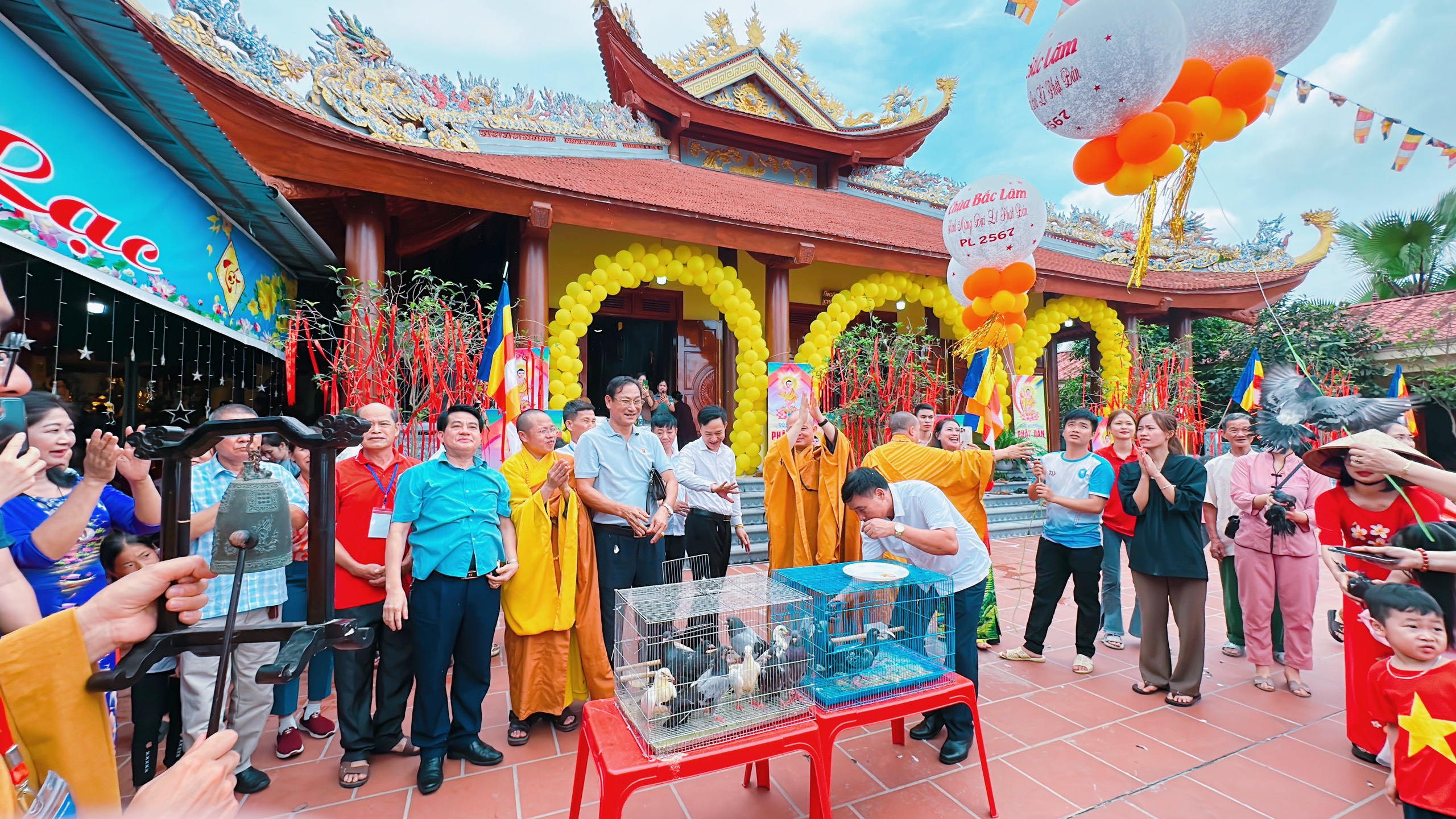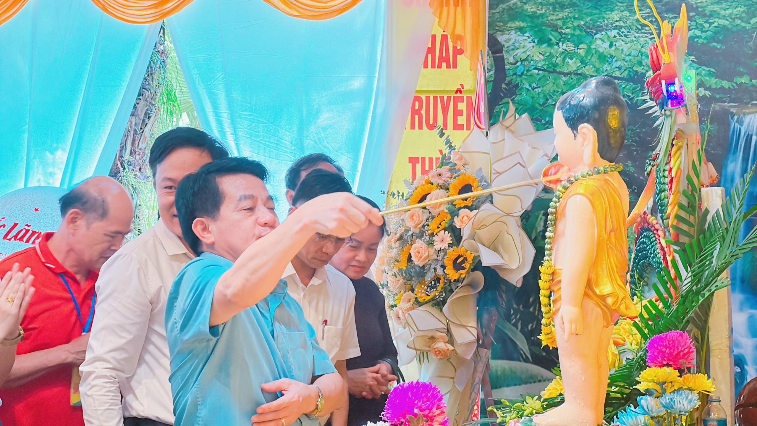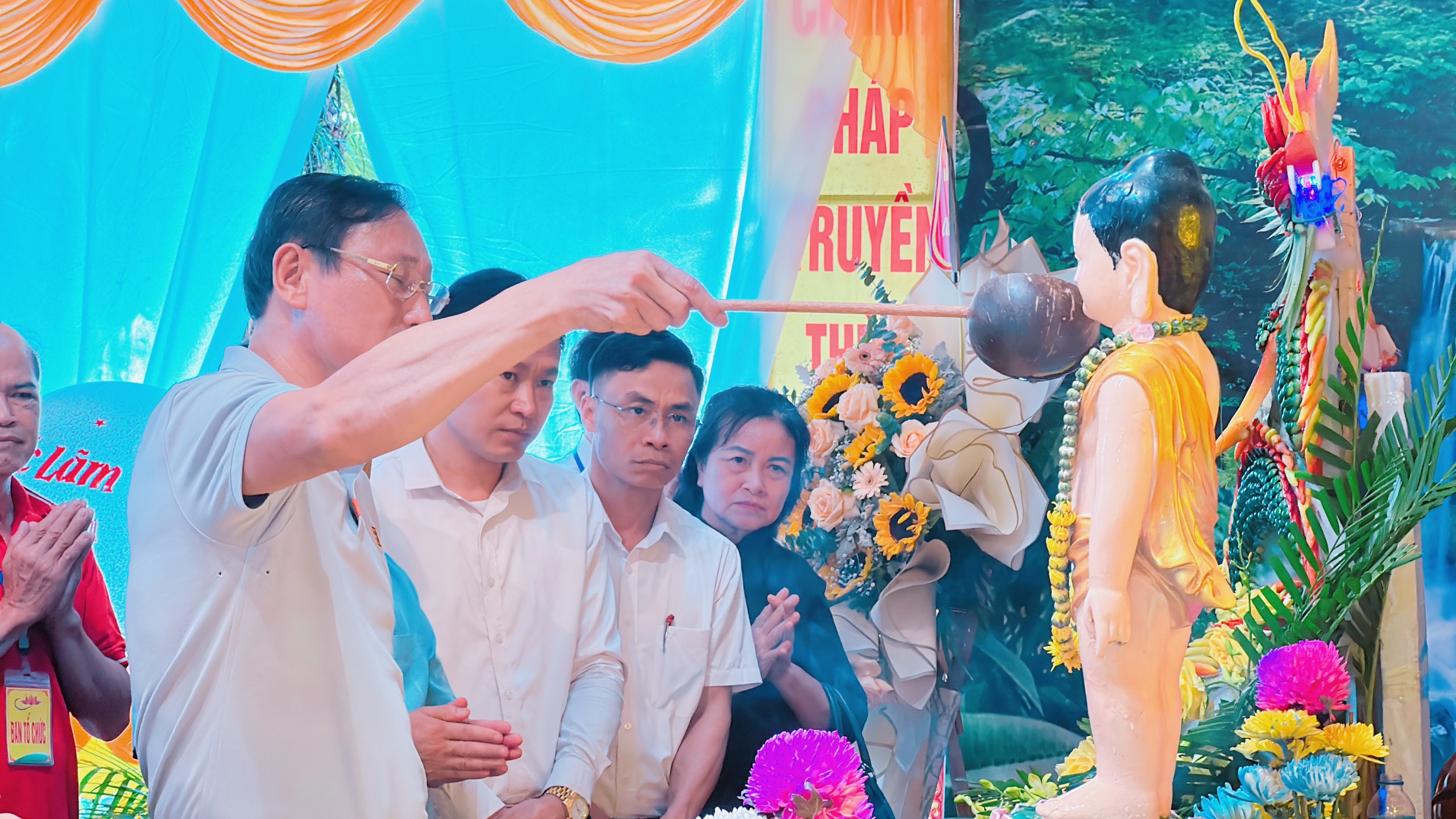 Tại buổi lễ, lãnh đạo tỉnh và lãnh đạo các ngành, các cấp địa phương đã tặng hoa, dâng hương mừng Đại lễ Phật đản và cử hành nghi lễ tắm Phật truyền thống, thả bồ câu và bóng bay cầu nguyện hoà bình trong niềm hân hoan của người tham dự.