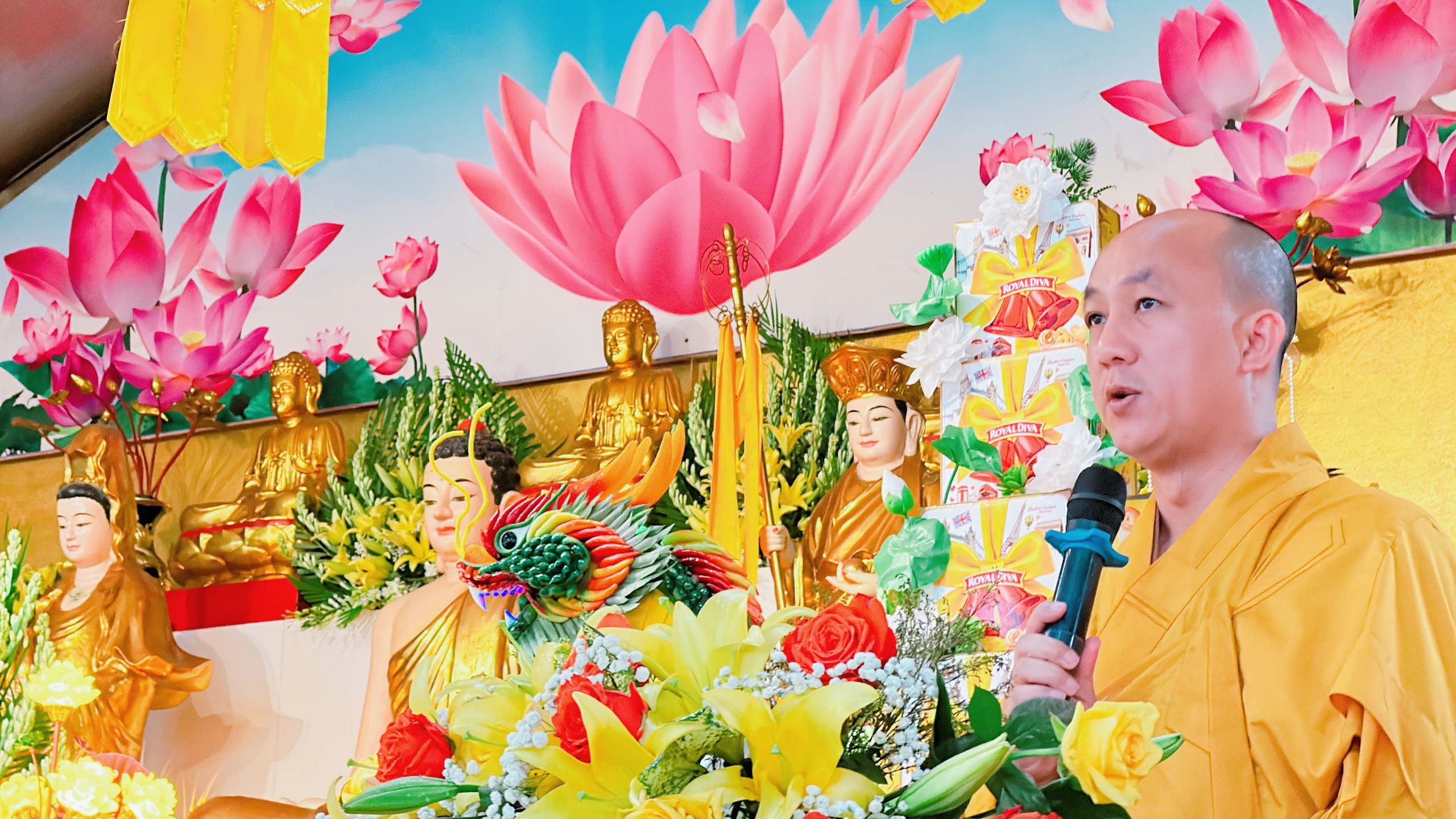 Tại buổi lễ, Đại đức Thích Chúc Tiếp đã cung tuyên Thông điệp Đại lễ Phật đản PL.2567 của Đức pháp chủ Giáo hội Phật giáo Việt Nam. Thông điệp nhấn mạnh, mùa Phật đản năm nay, phật tử Việt Nam đồng thời thành kính kỷ niệm 60 năm ngày Bồ tát Thích Quảng Đức, vị pháp thiêu thân, để đấu tranh cho hòa bình dân tộc. Ngọn lửa từ bi cùng với trái tim bất diệt của ngài có năng lực soi sáng và thức tỉnh lương tri con người, hóa giải tất cả thù hận. Ngài là biểu tượng sáng ngời của tinh thần bi, trí, dũng của bậc Bồ tát hiện thế và tinh thần nhập thế của Phật giáo Việt Nam.