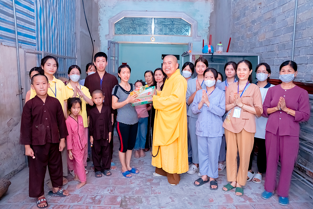 Đầu giờ chiều, đại chúng cùng nhau bước vào thời trì tụng Kinh Trường thọ Diệt Tội, niệm Phật kinh hành và dâng lời phát nguyện niệm Phật. Được sự phát tâm của mọi người toàn thể quý Phật tử dự khóa tu cùng với quý thầy tới tư gia của chị Nguyễn Thị hiền – Yên Khoái, Nga Yên, Nga Sơn, Thanh Hóa thăm hỏi và trao quà (1 bì thư 1.000.000đ, 1 thùng mỳ, 1 chai dầu…). Tuy phần quà nhỏ bé nhưng đó là tình cảm của các Thanh thiếu niên Phật tử chùa Đống Cao chia sẽ yêu thương tới các hoàn cảnh khó khăn trong cuộc sống này.