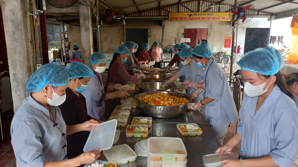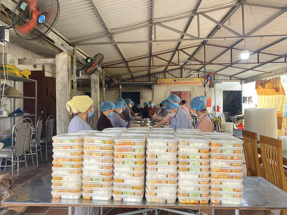 Tiếp đó quý Phật trẻ đã cùng nhau phát cơm gần 400 suất cơm chay tại Bệnh viện Đa Khoa huyện Nga Sơn do Phật tử Tịnh Hùng hướng dẫn.