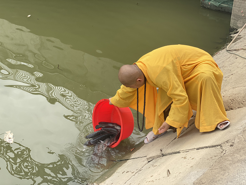 Đúng 9h00, quý Phật tử đã cùng Đại đức trụ trì bà con trở về chợ huyện Nga Sơn mua các loài súc sinh để phóng sinh lan tỏa yêu thương. Sau khi làm lễ phóng sinh tại dòng sông Hưng Long đại chúng cùng nhau về giảng đường Ngộ Chân Tử trì tụng kinh Bát Chánh Đạo và dâng cơm Phật ngày đầu tháng.