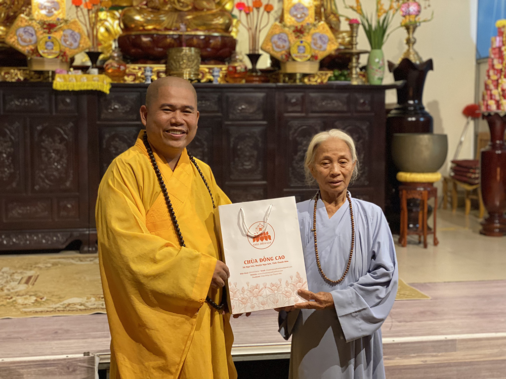 Tại đây, Đại đức trụ trì đã có đôi lời tán thán quý Phật tử và trao tặng những phần quà đến đại chúng có mặt.