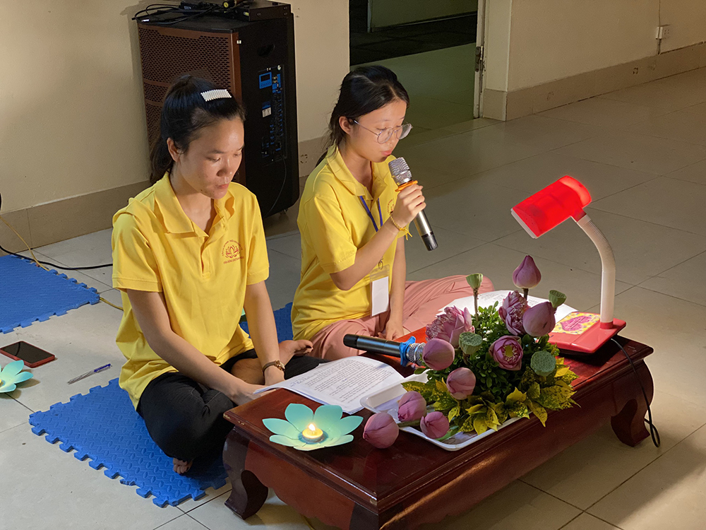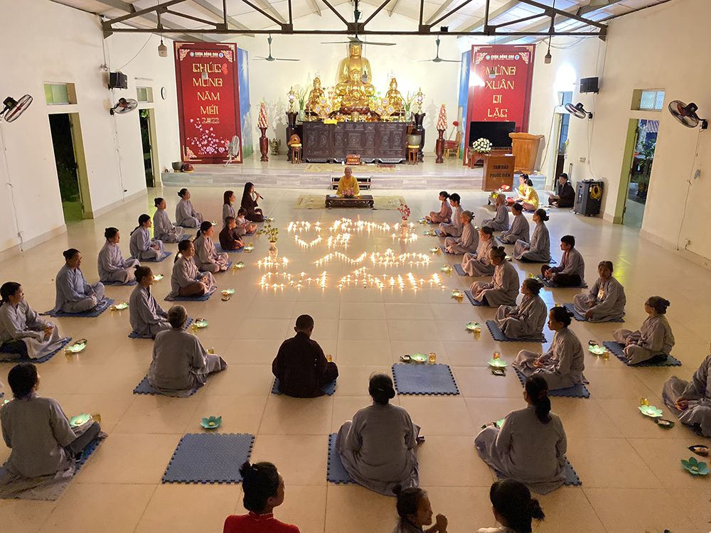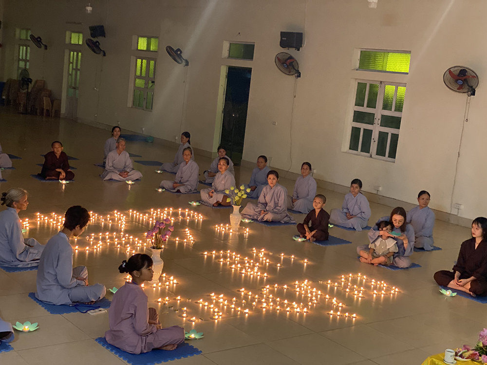 Tối cùng ngày, nằm trong chương trình tu học của khóa tu một ngày với chủ đề "Đường về nẻo chánh" lần thứ 1, chư Tôn đức cùng quý Phật tử đã có dịp lắng đọng tâm tư và trải nghiệm đêm thiền trà an tĩnh, chia sẻ năng lượng tu tập và các trở ngại trên con đường tu tập.
