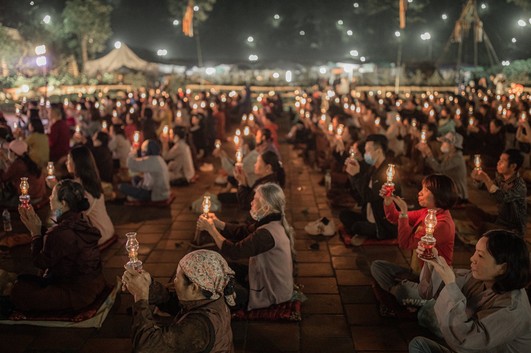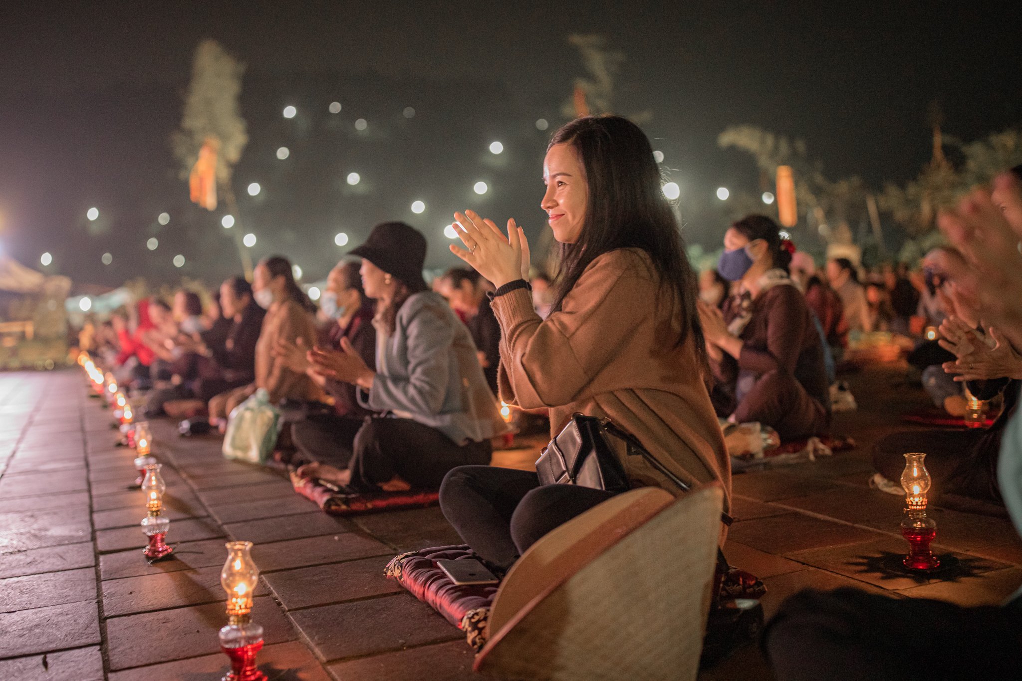 Sau lễ an vị tôn tượng Bồ tát Quán Thế Âm, chương trình thắp đèn đèn tưởng nhớ Đức Phật Thích Ca nhập Niết bàn và kỷ niệm ngày Quán Thế Âm Bồ tát đản sinh được diễn ra trên sân chùa. 1000 ngọn đèn dầu đã được sử dụng xếp thành hình một bông sen lớn theo các bậc thềm, đồng trên mỗi ô gạch trên sân chùa được đặt một ngọn đèn và một chiếc lá bồ đề.
