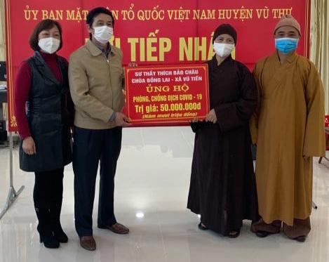 Sư cô Thích Bảo Châu - Trụ trì chùa Bồng Lai (Vũ Tiến, Vũ Thư) ủng hộ 50 triệu đồng