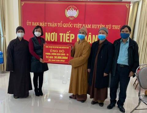 Theo đó, Ban Trị sự GHPGVN tỉnh đã ủng hộ 10 triệu đồng, Phân ban Ni giới tỉnh: 10 triệu đồng, Ban Trị sự GHPGVN huyện Vũ Thư: 30 triệu đồng, Phân ban Ni giới thành phố Thái Bình: 5 triệu đồng .v.v.. thông qua Uỷ ban MTTQ Việt Nam các cấp.