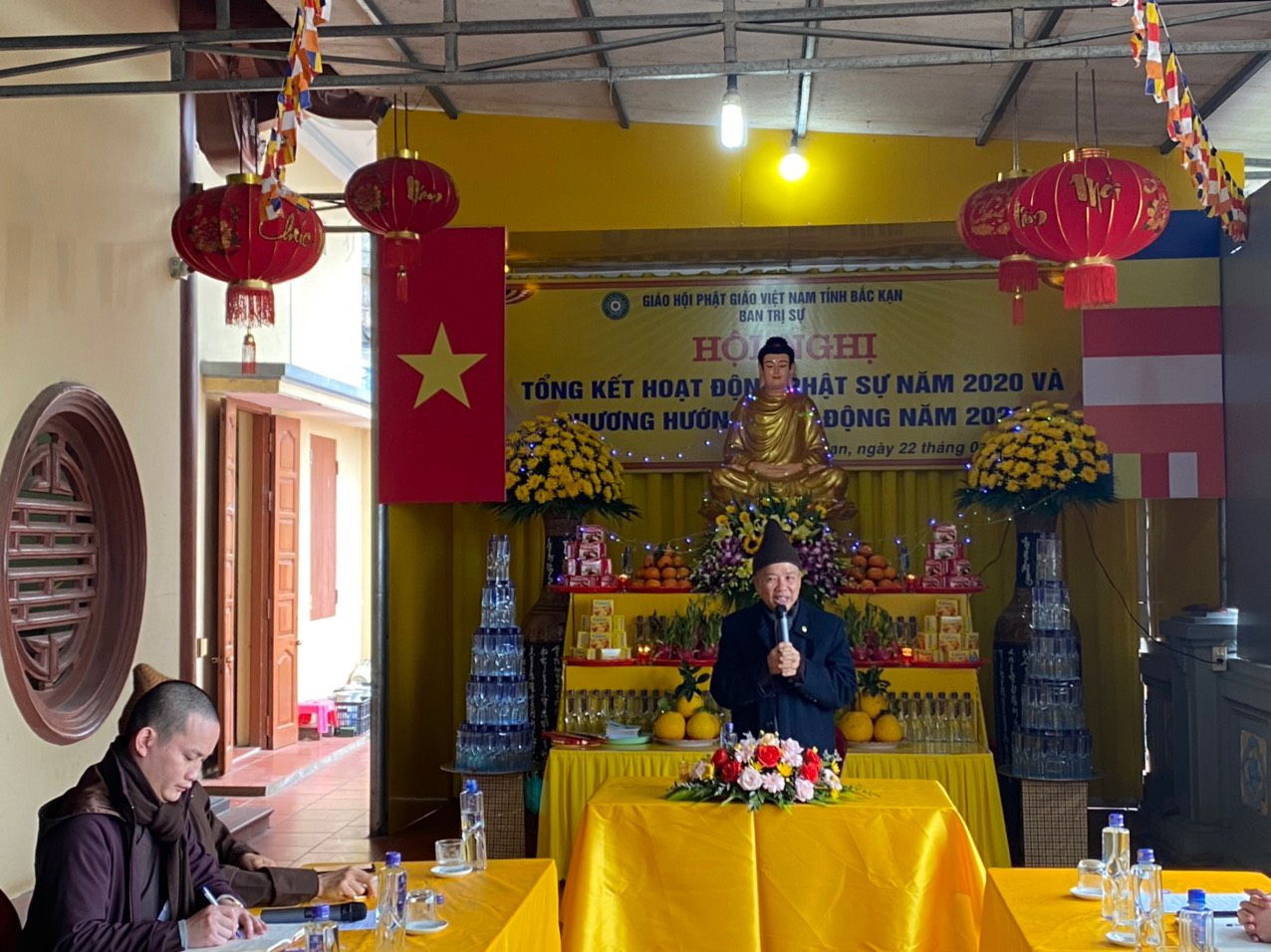 PSO - Ngày 22/01/2021 (nhằm ngày 10 tháng Chạp năm Canh Tý), tại Văn phòng Ban Trị sự GHPGVN tỉnh Bắc Kạn (Đền Mẫu, tổ 1A, phường Phùng Chí Kiên, TP. Bắc Kạn, tỉnh Bắc Kạn) BTS Phật giáo tỉnh đã tổ chức Hội nghị tổng kết hoạt động Phật sự năm 2020 và phương hướng hoạt động Phật sự năm 2021.