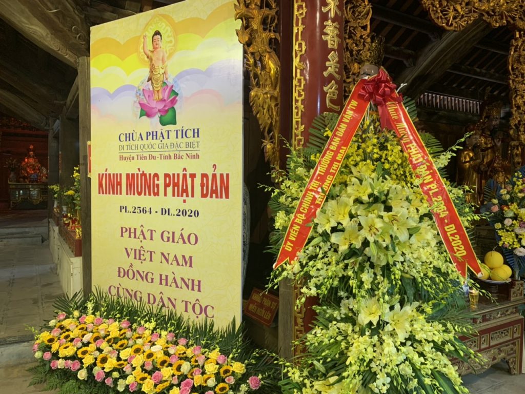 Nhân dịp này, Tỉnh ủy, HĐND, UBND, UBMTTQ và Đoàn đại biểu Quốc hội tỉnh Bắc Ninh cũng có quà và lẵng hoa tươi thắm chúc mừng Phật đản 2564 tới Thượng tọa Phó Chủ tịch - Tổng Thư ký và chư Tăng chùa Phật Tích.