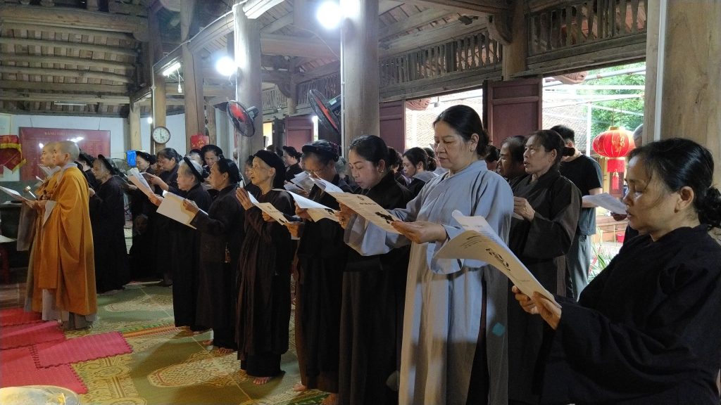Kế đến, chư Tôn đức Tăng Ni đã hướng dẫn quý Phật tử thực hiện nghi thức niêm hương bạch Phật, tụng Kinh Khánh đản và hồi hướng nguyện cầu cho quốc thái dân an, cầu cho dịch bệnh sớm qua đi.