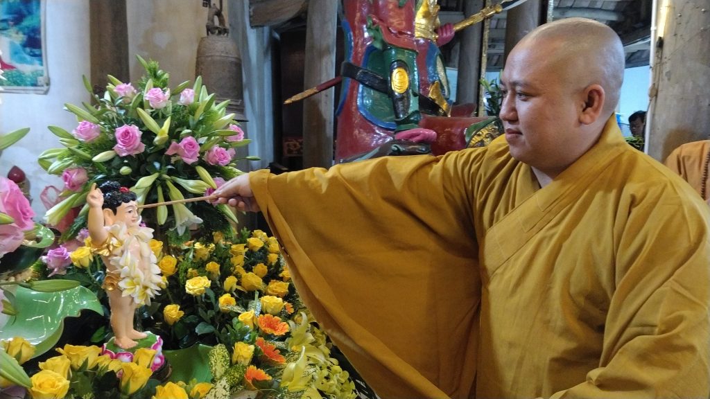 Phần nghi thức được mong đợi nhất là lễ Mộc Dục (tắm Phật), lần lượt các Phật tử rưới nước thanh tịnh lên thân Như Lai và quay về gột rửa thân tâm của chính mình. Buổi lễ tuy không đông người và không rộn ràng nhưng vẫn giữ được sự trang nghiêm thành kính hướng về ngày Đức Thế Tôn thị hiện.