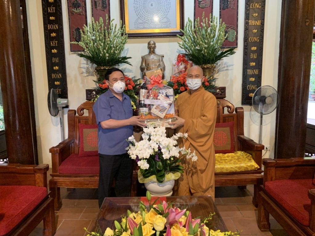 Tại buổi thăm, ông Nguyễn Tiến Trọng gởi lời thăm hỏi sức khỏe đến chư Tôn đức giáo phẩm lãnh đạo Giáo hội và chúc mừng mùa Phật đản an lành đến TT. Thích Đức Thiện cũng như chư Tôn đức Tăng, Ni, tín đồ Phật tử. Ông cũng ghi nhận những thành quả đạt được, những đóng góp lớn về mặt an ninh của Trung ương Giáo hội, góp phần vào sự bình an của đất nước. Điều đó đã thể hiện rõ nét tinh thần phụng sự Đạo pháp và Dân tộc của Phật giáo. Trong thời gian tình hình dịch bệnh Covid-19 diễn biến phức tạp, Trung ương Giáo hội đã kịp thời hướng dẫn Tăng Ni, Phật tử cả nước thực hiện tốt các chỉ đạo của Chính phủ về phòng, chống dịch bệnh. Bên cạnh đó tổ chức nhiều hoạt động từ thiện cứu trợ, giúp đỡ đồng bào khó khăn, lao động nghèo… trong mùa dịch.