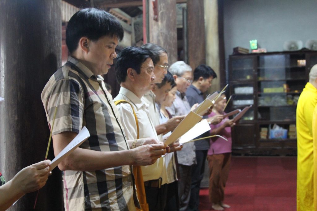 Trước khi bắt đầu buổi lễ, đại chúng đã chắp tay trang nghiêm, niệm hồng danh của Đức Phật cung thỉnh chư tôn đức quang lâm. Buổi lễ có sự chứng minh của HT. Thích Thanh Dũng – Phó Pháp chủ, kiêm Chánh Thư ký HĐCM GHPGVN; TT. Thích Thanh Trung – Ủy viên HĐTS, Phó trưởng ban Thường trực BTS GHPGVN tỉnh Bắc Ninh, cùng chư tôn đức Tăng bản tự. Do dịch bệnh COVID – 19 diễn biến phức tạp, đại lễ Phật đản năm nay làm có phần đơn giản và khác hơn mọi năm.