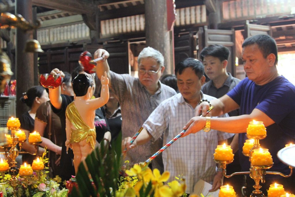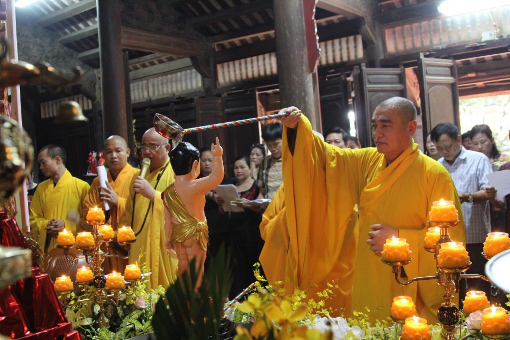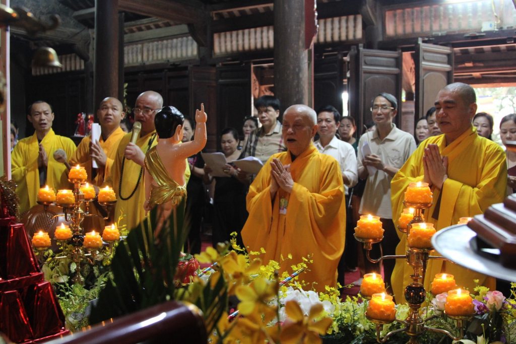 Sau cùng, chư tôn đức và toàn thể đạo tràng niệm hương bạch Phật và tụng thời sám Khánh đản, Tam tự Quy y và thực hiện nghi thức tắm Phật. Trong khói trầm hương nguyện tỏa, một lòng thành kính hướng về ngôi Tam bảo, chư tôn đức cùng các Phật tử đều cầu nguyện cho thế giới hoà bình, chúng sinh an lạc, Phật pháp trường tồn.