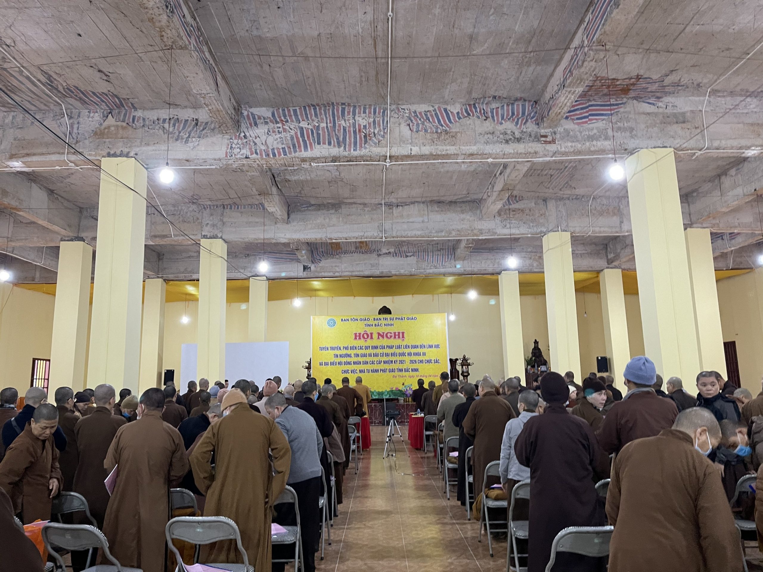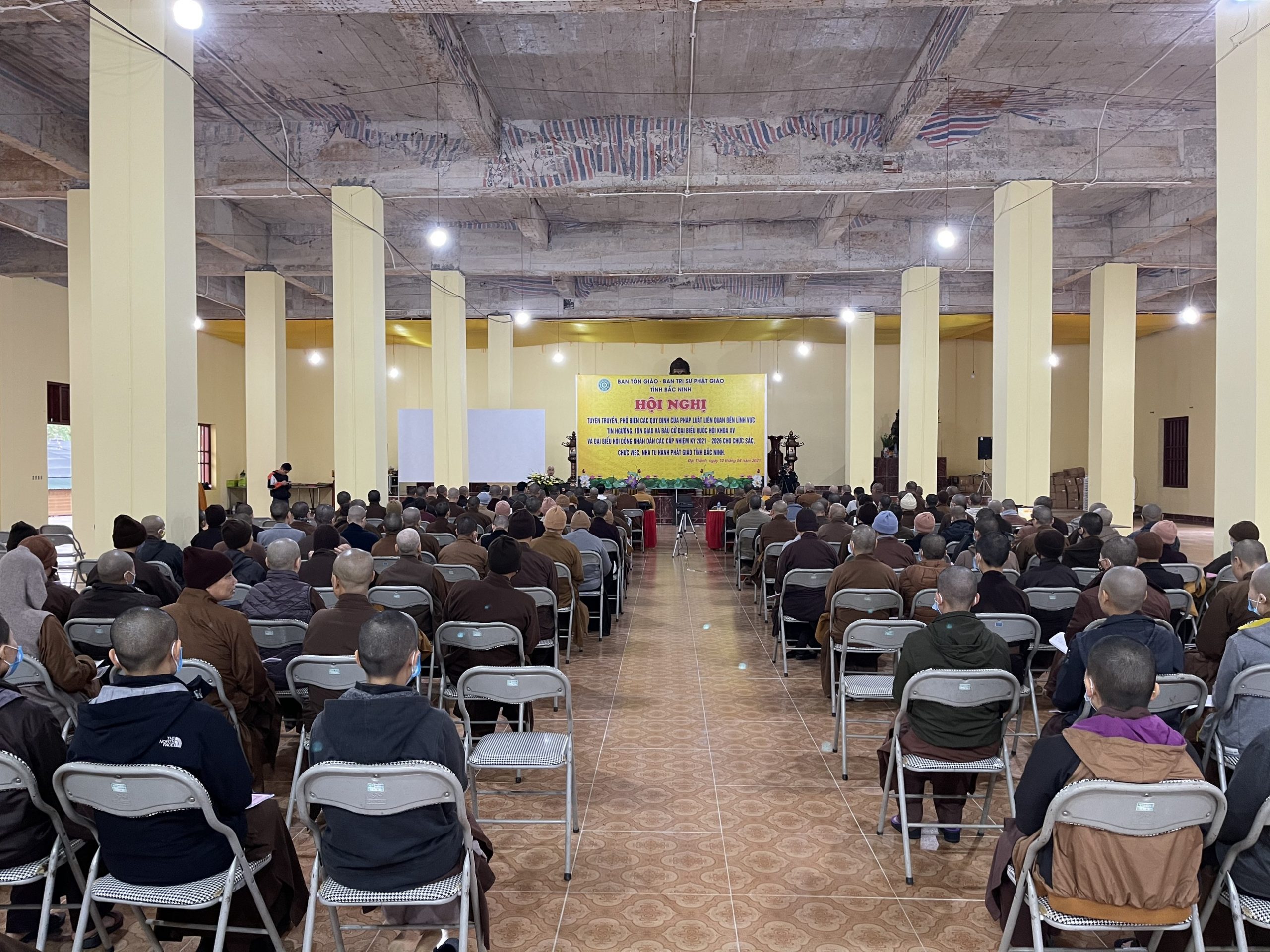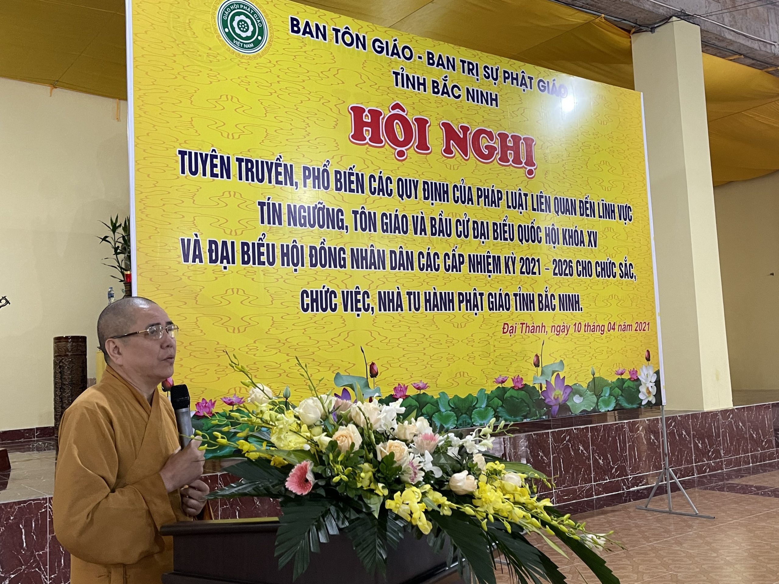 PSO - Sáng ngày 10/04/2021 (nhằm ngày 29/02 Tân Sửu), tại chùa Đại Thành (TP. Bắc Ninh), Ban Trị sự GHPGVN tỉnh Bắc Ninh đã phối hợp cùng Ban tôn giáo tỉnh tổ chức tuyên truyền, bồi dưỡng về Luật tôn giáo tín ngưỡng và công tác bầu cử HĐND các cấp dành cho chư Tăng Ni Phật giáo tỉnh.