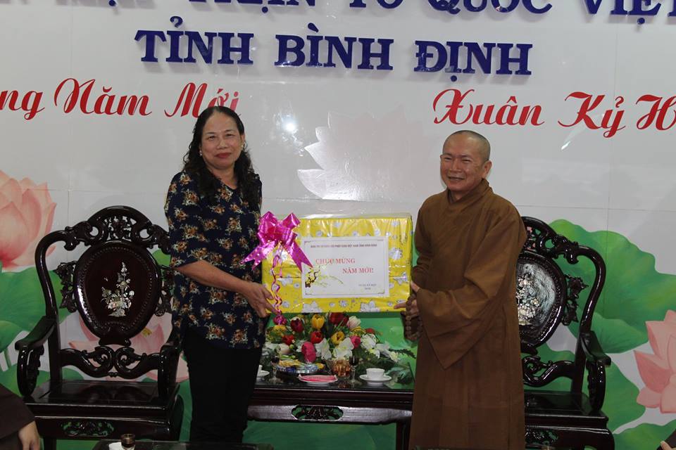 TT. Thích Đồng Quả thay mặt Ban Trị sự GHPGVN tỉnh đã gửi lời tri ân đến quý cơ quan chính quyền đã quan tâm và tạo điều kiện giúp đỡ Phật sự của tỉnh nhà thành tựu. Thượng Tọa cũng thông báo các hoạt động Phật sự thành tựu năm 2018, đặc biệt là Hội thảo khoa học Phật giáo và văn học Bình Định thành công, tạo được tiếng vang trong giới nghiên cứu khoa học Phật giáo. Trong năm tới 2019, sẽ tổ chức các chương trình Phật sự, quan trọng là Đại lễ Vesak Liên Hiệp Quốc; khóa bồi dưỡng hành chính trụ trì cho Tăng Ni trên toàn tỉnh. Mong muốn quý lãnh đạo tiếp tục hỗ trợ và giúp đỡ để các Phật sự tại tỉnh nhà hanh thông, thành tựu.