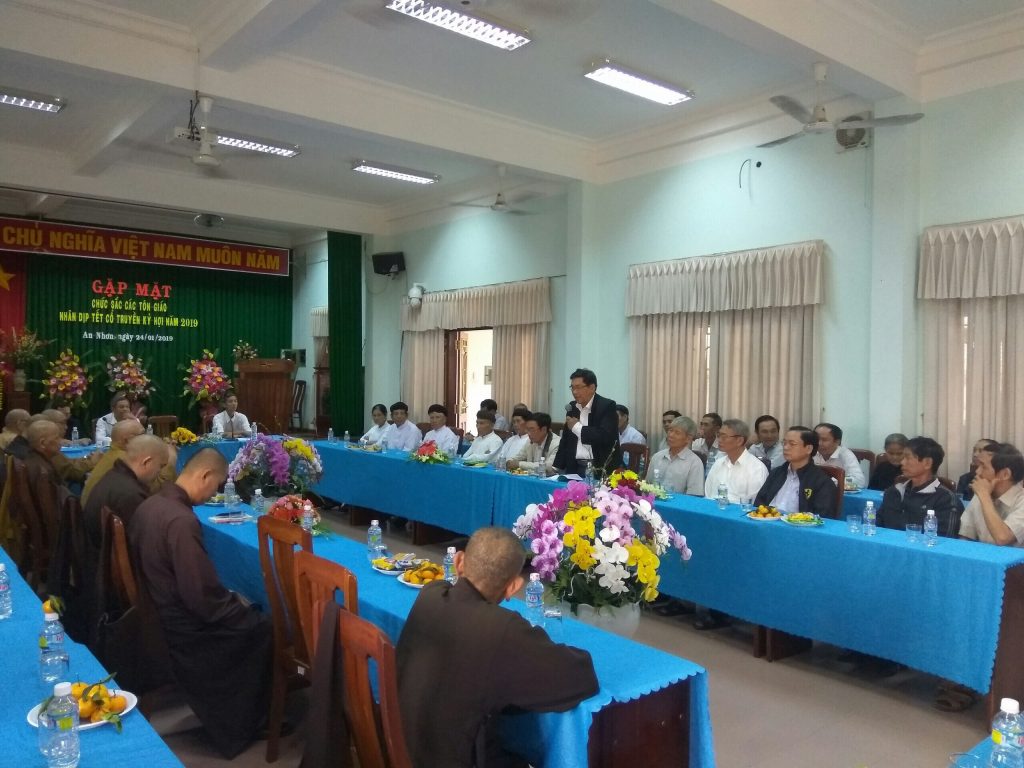 PSO - Chiều ngày 24/1/2019 (nhằm 19/12/Mậu Tuất), tại hội trường THỊ UỶ - HĐND - UBND - UBMTTQVN thị xã An Nhơn, diễn ra buổi gặp mặt chức sắc các Tôn giáo trong dịp Tết cổ truyền Kỷ Hợi năm 2019.