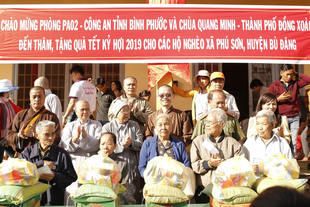 Cùng ngày chùa Phật Quang Q.10 kết hợp với chùa Thanh Sơn( xã Thọ Sơn) do Đại Đức Thích Quảng Trí làm cầu nối giữa bà con nghèo với quý mạnh thường quân tại TP. HCM. Đoàn đã phát 200 phần quà cho bà con thuộc diện khó khăn tại xã. Đại đức Thích Giác Đạo - Chánh VP BTS PG tỉnh với 200 phần quà phát cho bà con các xã thuộc huyện Đồng Phú, 200 phần quà xã Phú Sơn và Hớn Quản.