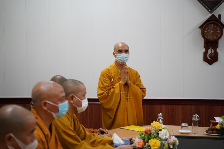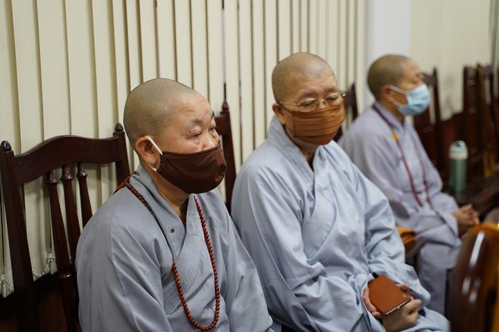 Đón tiếp quý phái đoàn có Hòa thượng Thích Bảo Nghiêm - Phó Chủ tịch HĐTS, Trưởng Ban Hoằng pháp TƯ, Trưởng Ban trị sự GHPGVN thành Phố Hà Nội; Hòa thượng Thích Thanh Chính - Ủy viên Thường trực HĐTS GHPGVN, Phó Trưởng Ban Thường trực Ban trị sự GHPGVN thành Phố Hà Nội; Thượng tọa Thích Minh Tuấn - Ủy viên HĐTS GHPGVN, Phó Trưởng Ban trị sự GHPGVN thành phố Hà Nội cùng chư tôn đức Hòa thượng, Thượng tọa, Ni trưởng, Ni sư Thường trực Ban trị sự GHPGVN thành phố Hà Nội.