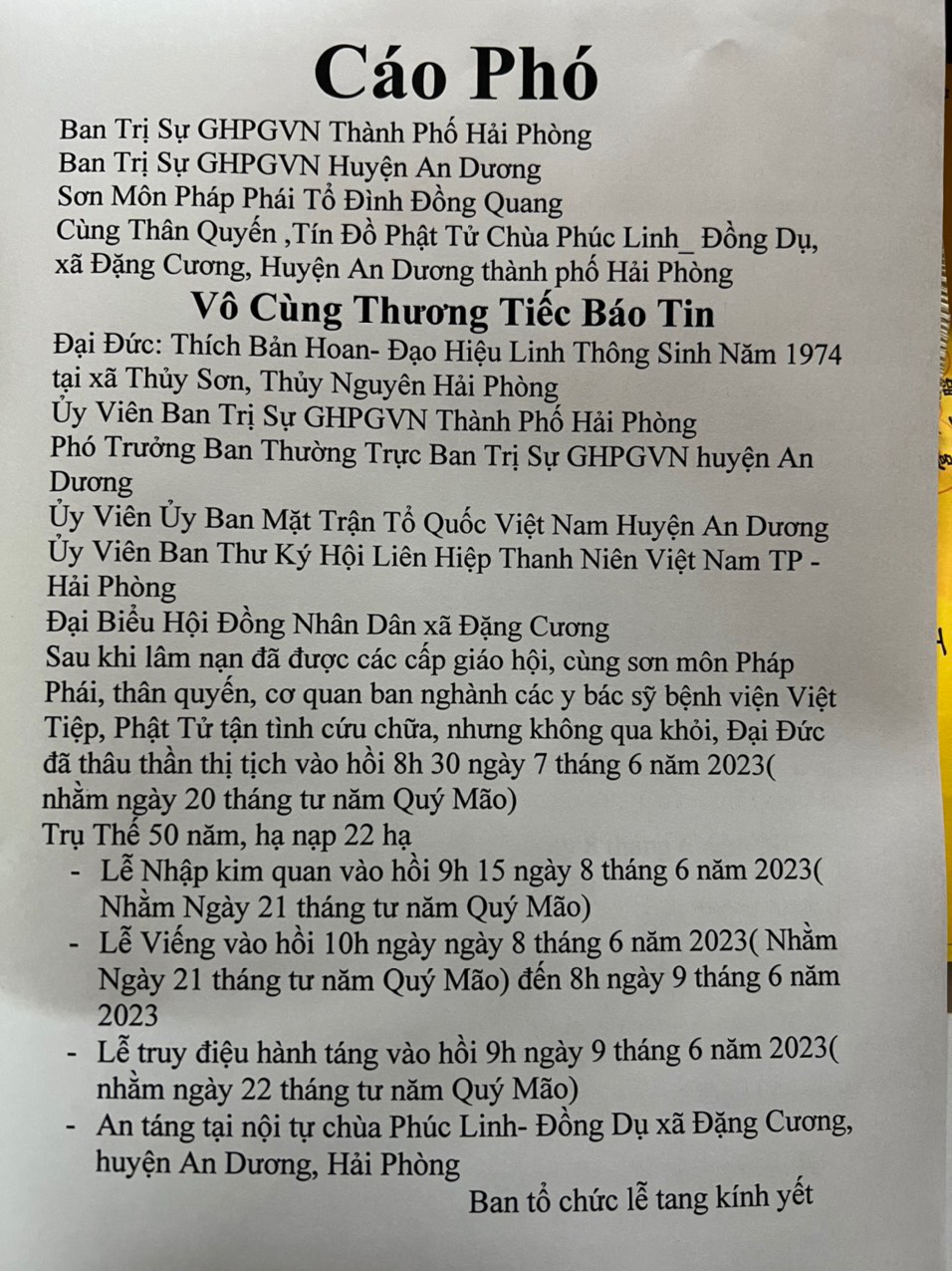 Môn đồ pháp quyến vô cùng kính tiếc báo tin: