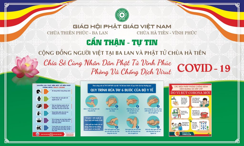 Trước bối cảnh dịch bệnh viêm đường hô hấp cấp do virut Covid –19, để chủ động phòng chống dịch bệnh, đảm bảo an toàn sức khỏe cho các Phật tử khi đến lễ Phật, thực hiện chỉ đạo của Hội đồng Trị sự (HĐTS) GHPGVN qua các công văn số 027/CV-HĐTS, số 042/CV-HĐTS. Chư Tăng Phật tử chùa Thiên Phước (Ba Lan), chùa Hà Tiên nhận thấy cần nêu cao trách nhiệm thực hiện, góp sức cùng các cơ quan nhà nước, cộng đồng xã hội, để tham gia phòng chống, kiểm soát dịch bệnh, nâng cao ý thức để bảo vệ bản thân và cộng đồng nhân dân Phật tử có được sức khỏe, tinh thần cuộc sống ổn định.