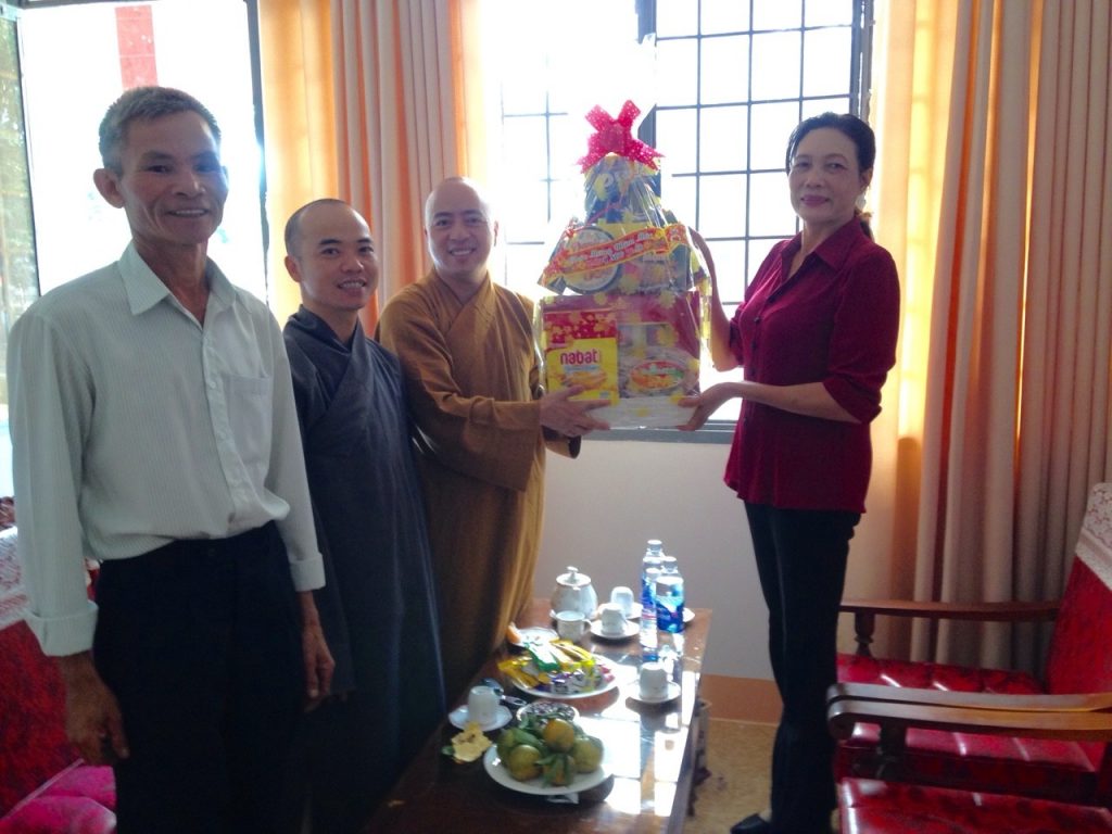 Quý ông, bà đại diện lãnh đạo Đảng, chính quyền, mặt trận, công an huyện đã vui vẻ đón tiếp và ghi nhận những thành quả của Phật giáo huyện nhà, đã góp phần cho đời sống văn hóa của địa phương ngày thêm khởi sắc, ấm áp nghĩa tình. Cuối lời chúc chư Tôn đức Tăng, Ni cùng Phật tử năm mới 2019 an vui, thành tựu sở nguyện, buổi lễ kết thúc trong tinh thần hòa hợp thống nhất.