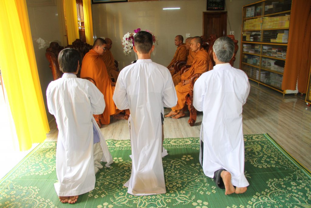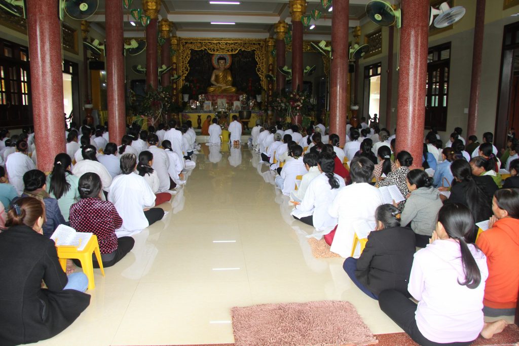 Trong niềm hoan hỷ của năm mới, quý Phật tử trở về Tịnh xá rất đông, thực hiện nghi thức cúng dường, sớt bát, tụng kinh cầu nguyện.