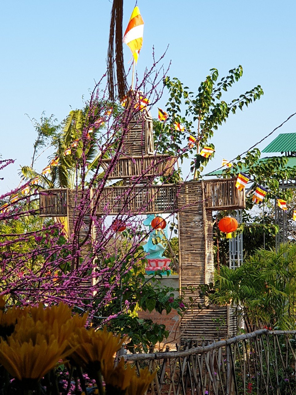 Nhưng đâu đó cũng có những người đón Tết cổ truyền dân tộc theo phong cách mới, không có pháo hoa, không có bữa tiệc thịnh soạn thay vào bằng điệu nhảy cồng chiêng, tiếng hát cao vút trong trẻo vang vọng núi rừng của người Phật tử Ê Đê cúng dường.