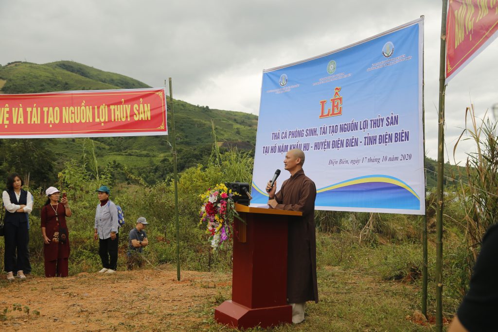 Đại diện Lãnh đạo Tổng cục Thủy sản phát biểu khai mạc và có đôi lời cảm ơn về sự đồng hành của các cấp chính quyền và chư Tôn đức GHPGVN tỉnh Điện Biên, các mạnh thường quân, Phật tử đạo tràng đã ủng hộ tịnh tài, tịnh vật cho buổi lễ phóng sinh.