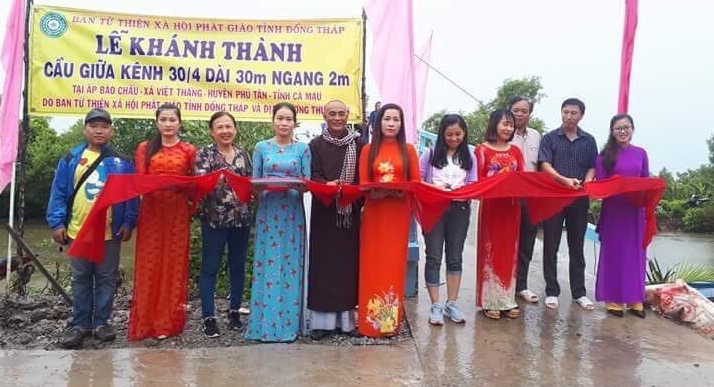 TT .Thích Thiện Quý, Trưởng Ban Từ thiện Xã hội Phật giáo tỉnh Đồng Tháp và đại diện chính quyền tỉnh Cà Mau, huyện Phú Tân, các mạnh thường quân tại TP. HCM và người dân đã đến tham dự buổi thông cầu kênh 30/4.