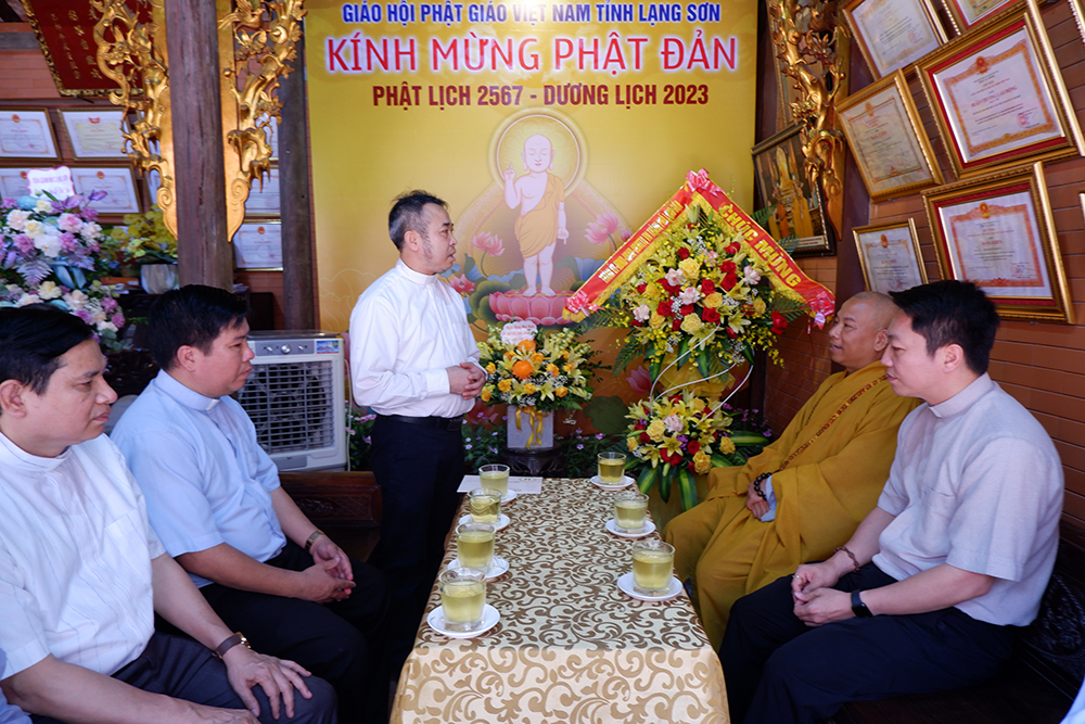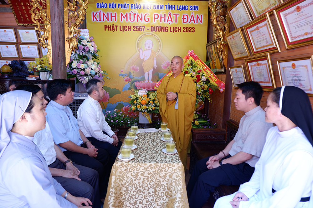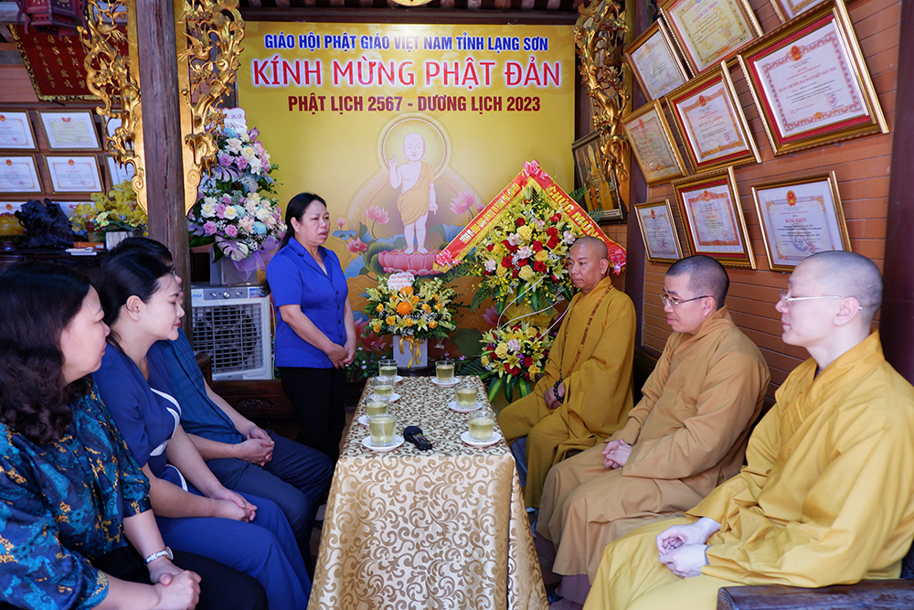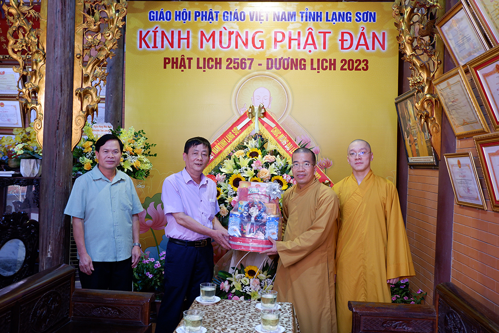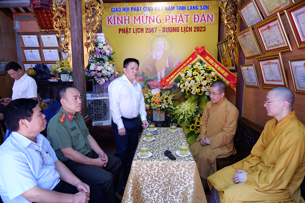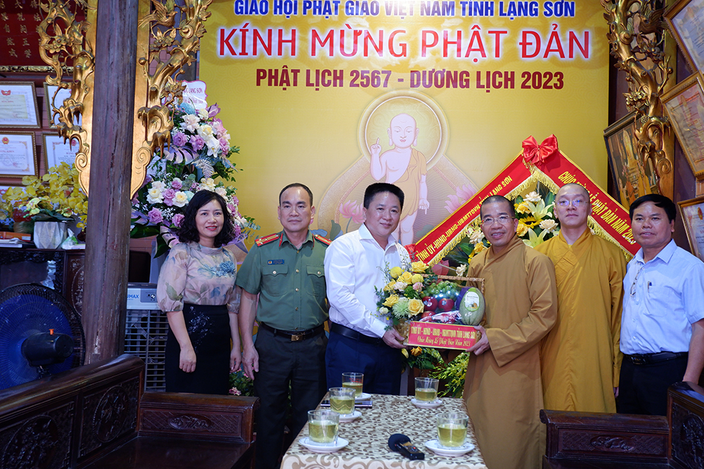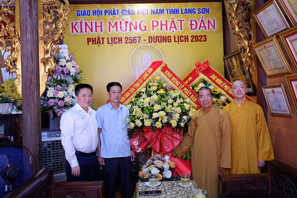 Các vị lãnh đạo đại diện các cơ quan hữu quan của tỉnh đã gửi lời thăm hỏi ân cần và chúc mừng tới chư Tăng, Phật tử trong Ban Trị sự GHPGVN tỉnh Lạng Sơn nhân dịp Đại lễ Phật đản PL.2567. Các vị lãnh đạo đánh giá cao những thành tựu Phật sự đã đạt được trong thời gian qua của Ban Trị sự GHPGVN tỉnh và mong muốn trong thời gian tới BTS tiếp tục phát huy những thành tựu Phật sự đã đạt được, góp phần xây dựng quê hương đất nước ngày càng giàu mạnh.
