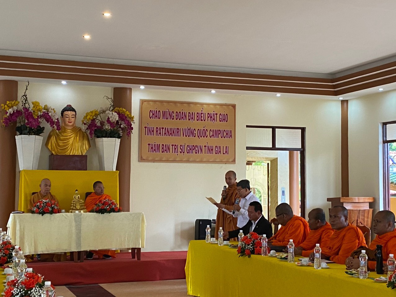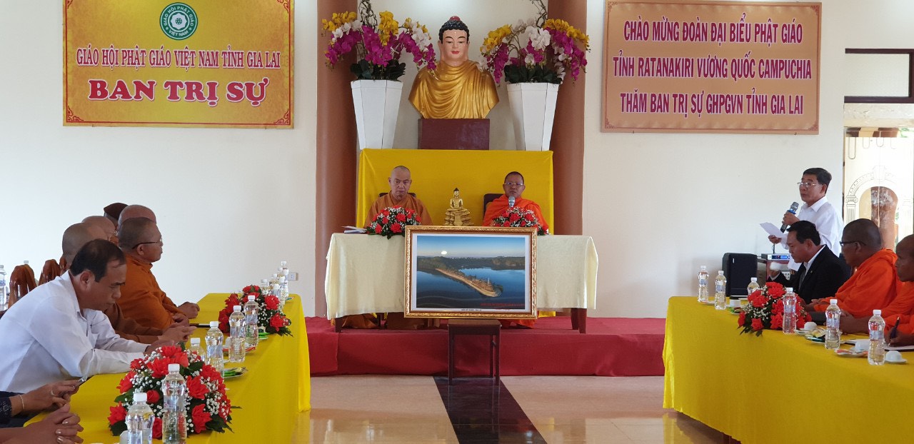 HT. Thích Từ Vân - Ủy viên HĐTS, Trưởng BTS GHPGVN tỉnh đã bày tỏ niềm hân hoan khi được đón tiếp phái đoàn Sở Lễ nghi - Tôn giáo và các vị sư lãnh đạo Phật giáo tỉnh Ratanakiri đến thăm và giao lưu công tác Tôn giáo - Phật giáo tại tỉnh Gia Lai. Qua đó, Hòa thượng có đôi lời chúc sức khỏe đến phái đoàn, đồng thời giới thiệu sơ lược về tình hình Phật sự, cũng như sự phát triển của Phật giáo tỉnh Gia Lai dưới sự giúp đỡ tận tình của các cấp chính quyền địa phương.
