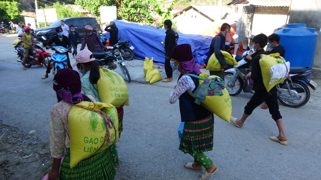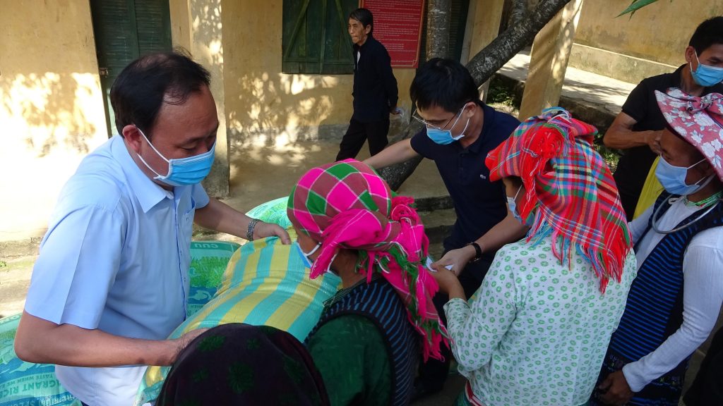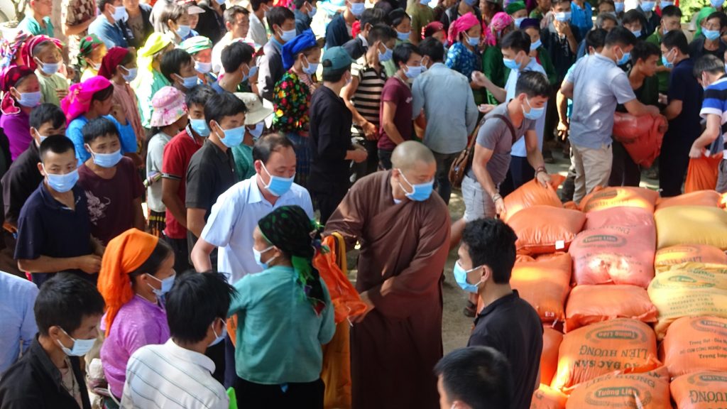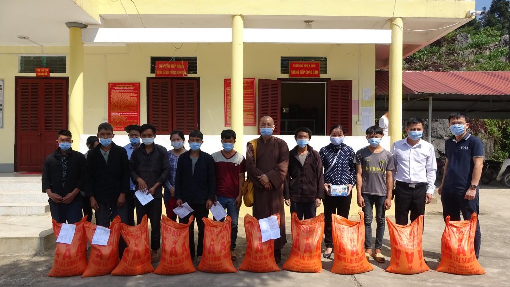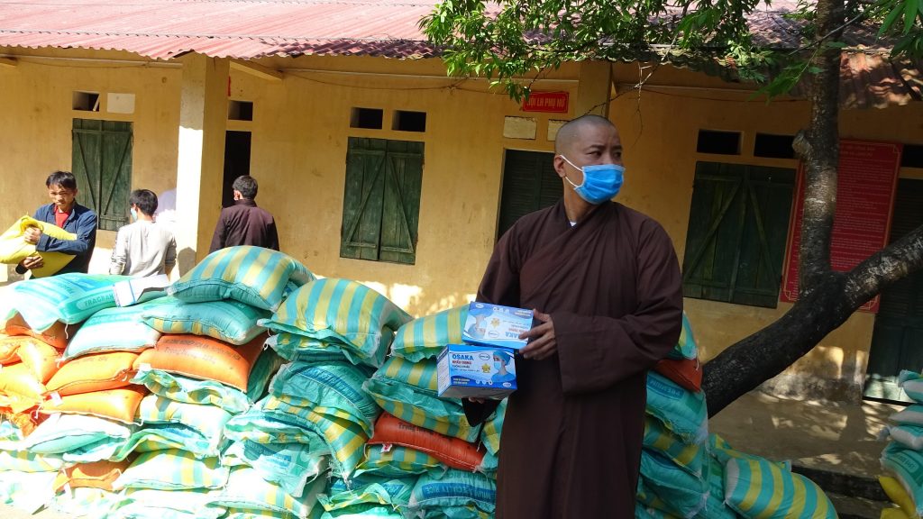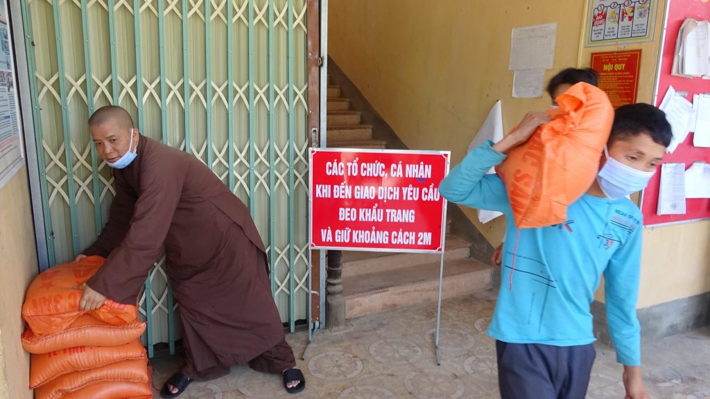 Suốt hai ngày trời oi bức nhà chùa cùng các Phật tử đã đến trao tận tay cho các hộ nghèo tại hai huyện nêu trên. Ngoài ra nhà chùa đã chuẩn bị 3000 chiếc khẩu trang cho những hộ nghèo đến nhận gạo thực hiện theo tinh chỉ thị của bộ y tế về giãn cách ly.