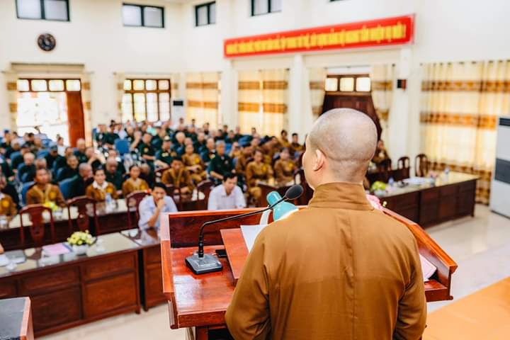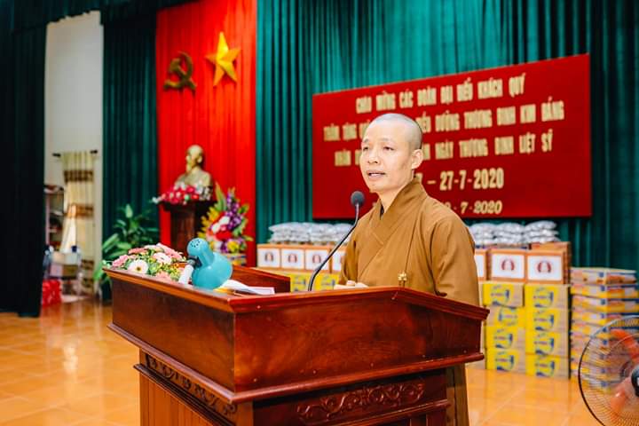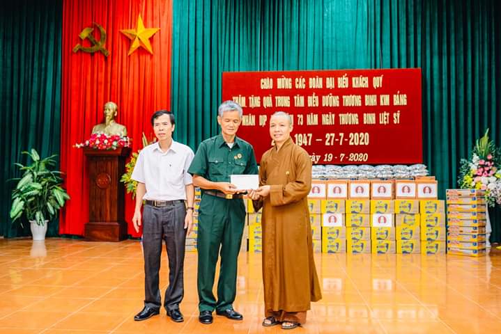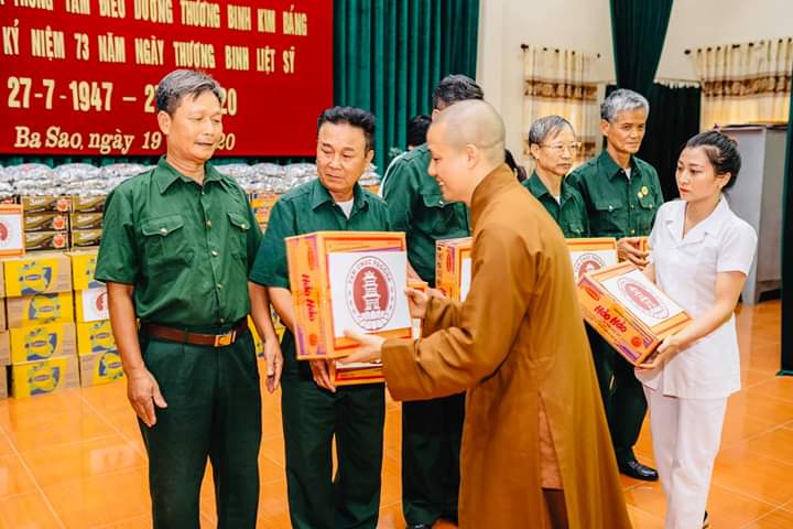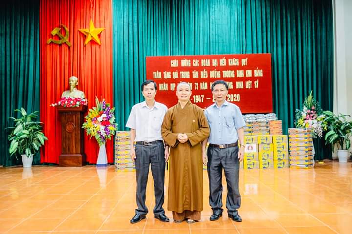 Bên cạnh đó, Thượng tọa cũng có những lời tán thán động viên tới sự hi sinh đóng góp to lớn của lãnh đạo, cán bộ, công nhân viên, người lao động tại Trung tâm đã không quản ngày đêm, khó khăn vất vả để chăm sóc cho các thương binh, bệnh binh như là người thân gia đình mình, đó vừa là tình cảm giữa con người với con người, sự biết ơn của người đi sau, của xã hội dành cho các bác thương binh, bệnh binh vì đã hi sinh xương máu để bảo vệ tổ quốc, giúp đất nước hòa bình như ngày nay, thứ đến Thượng tọa cũng mong các bác thương bệnh binh tiếp tục phát huy phẩm chất, ý chí, tinh thần thép của anh bộ đội cụ Hồ, yên tâm điều trị bệnh, chấp hành tốt chủ trương, đường lối chính sách của Đảng và Nhà nước, trên phương châm đoàn kết, sống tiếp tục cống hiến cho sự phát triển của đất nước ở thời bình.