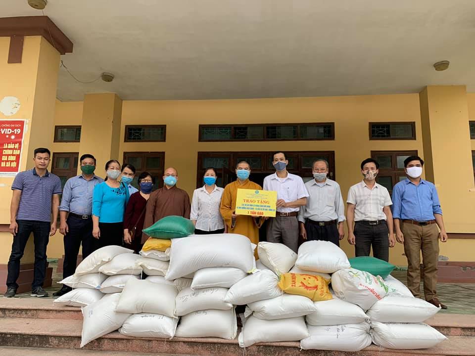 ĐĐ.Thích Minh Giá - Trụ trì chùa Hòa Lạc tặng 1,6 tấn gạo cho bà con xã Chuyên Ngoại, huyện Duy Tiên