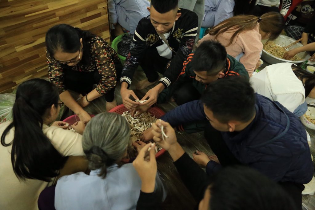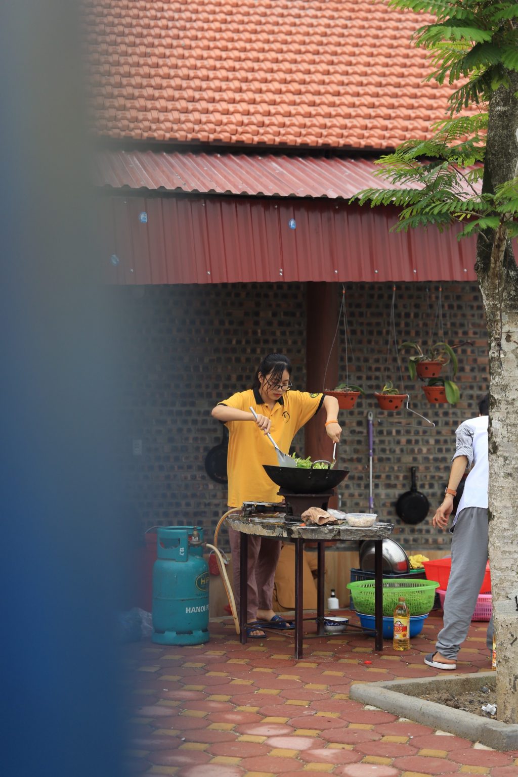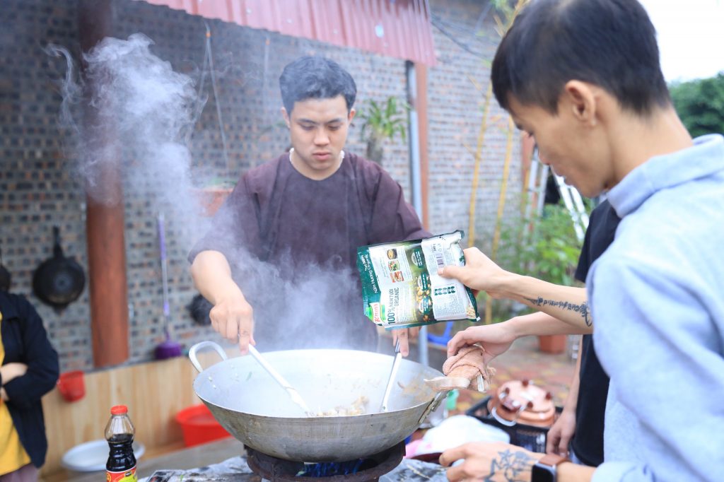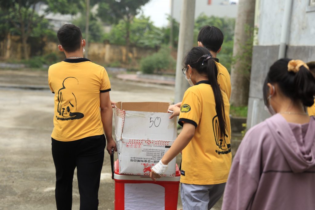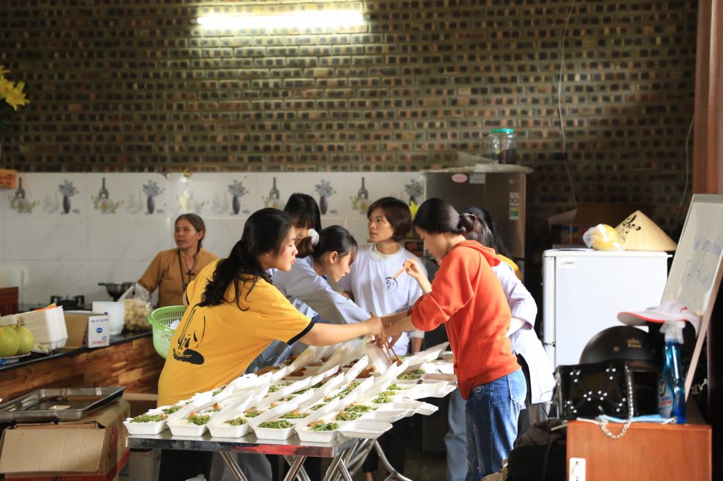 Ngay từ sáng sớm, bên hiên bếp của Chùa, ánh lửa đã đỏ rực, làn khói bếp nhè nhẹ quyện với sương mai, căn bếp ấm lên bởi nụ cười hoan hỷ trên những gương mặt rạng ngời của người con Phật được trở về công phu lao tác, chuẩn bị những phần cơm chay ngon bổ dưỡng. Tâm Bồ đề và tâm yêu thương, chia sẻ được thể hiện qua những phút giây thật bình dị từ nhặt rau, đun nước, chia cơm,... 250 phần cơm chay nhanh chóng hoàn thành để kịp giờ bữa trưa của các bệnh nhân. Những phần cơm ấy không chỉ thơm từ gia vị của rau củ quả mà nêm nếm vào ấy là hương vị của tình người, hương vị của tinh thần từ bi mà Đức Thế Tôn đã truyền dạy.