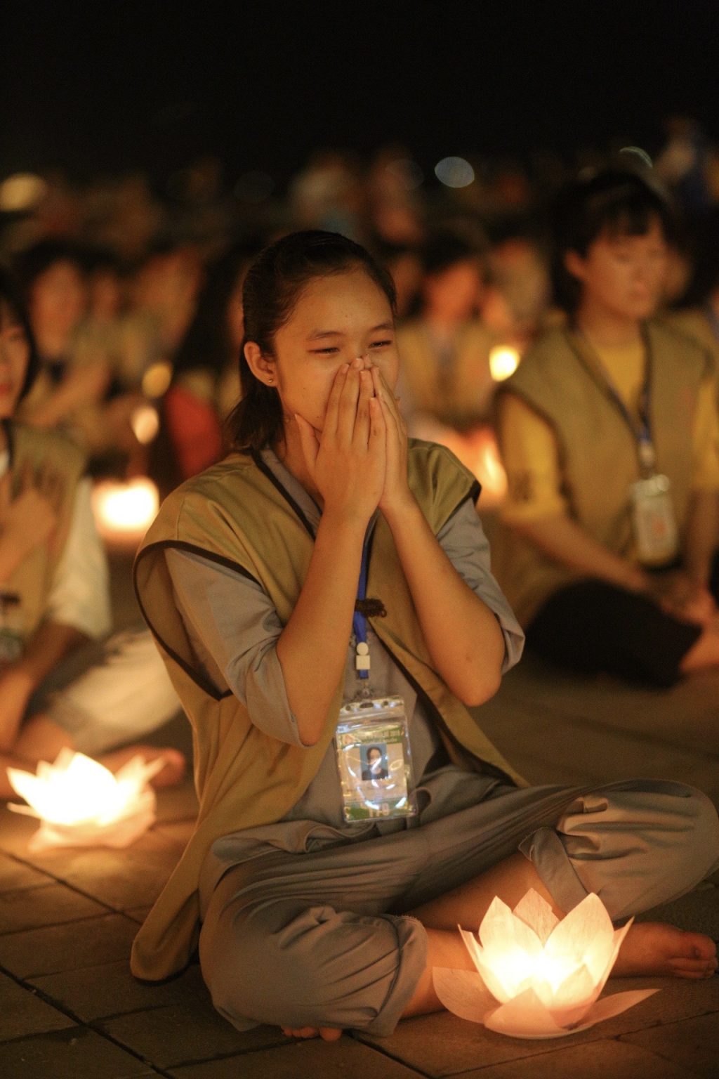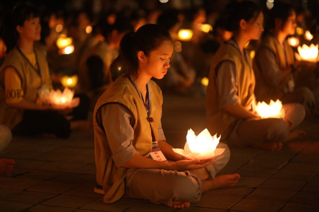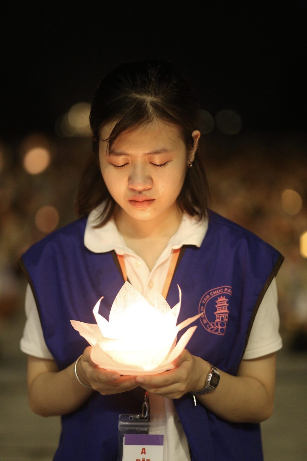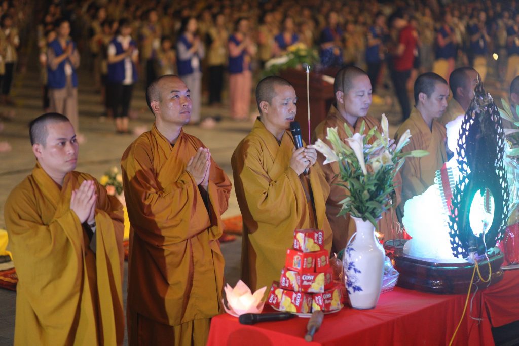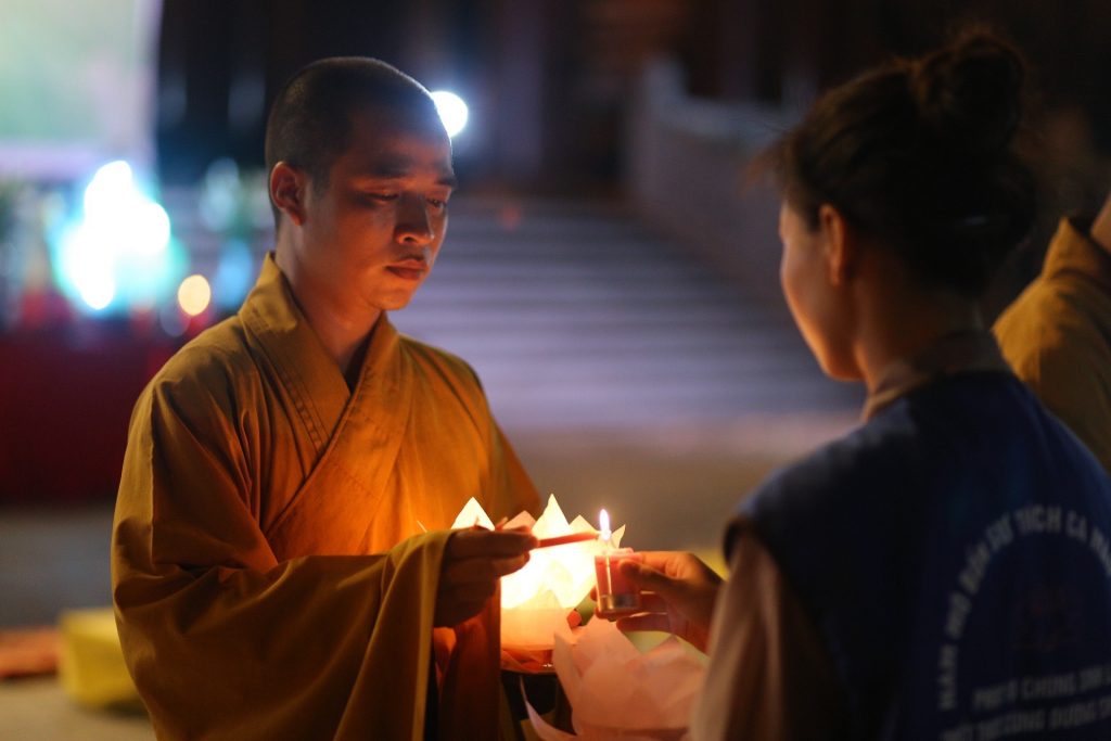 Sau nghi lễ niêm hương bạch Phật, TT. Thích Minh Quang - Trưởng BTS khoá tu cùng quý chư tôn thiền đức cử hành nghi lễ truyền đăng cho các khoá sinh. 1.500 ngọn nến hoa đăng được thắp lên là 1.500 khoá sinh được truyền trao ánh sáng của từ bi và trí tuệ, ánh sáng của chính pháp từ nay đã soi đường dẫn lối cho các con vững bước trên muôn nẻo đường đời!