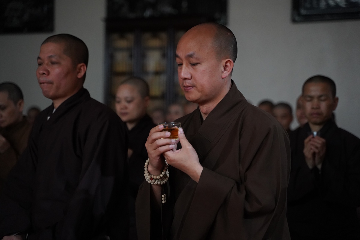 Khép lại buổi Thiền trà, Hoà thượng Thích Bảo Nghiêm - Phó chủ tịch HĐTS, Trưởng Ban Hoằng pháp TW niệm ân chư Tôn đức đã tạo nên buổi Thiền trà này, để tất cả mọi người có dịp lắng đọng tâm tư, an trú thảnh thơi và vững chãi bên nhau. Hoà thượng thiết nghĩ cần phải thêm nhiều buổi thiền trà như vậy ở các chùa, để mọi người có thể trao đổi với nhau, nhìn nhận và quán chiếu lại mọi điều để cuộc sống trở nên nhẹ nhàng hơn.